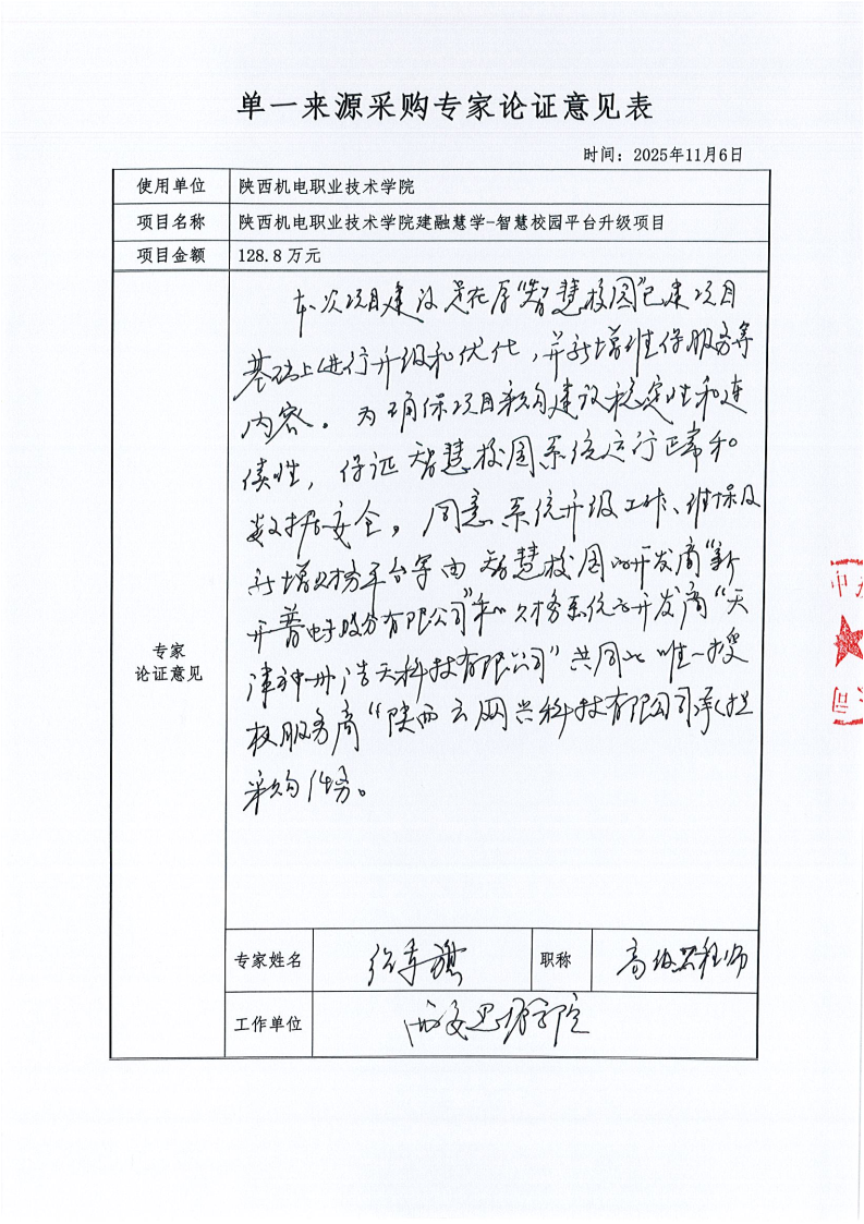 陕西机电职业技术学院建融慧学-智慧校园平台升级项目单一来源公示