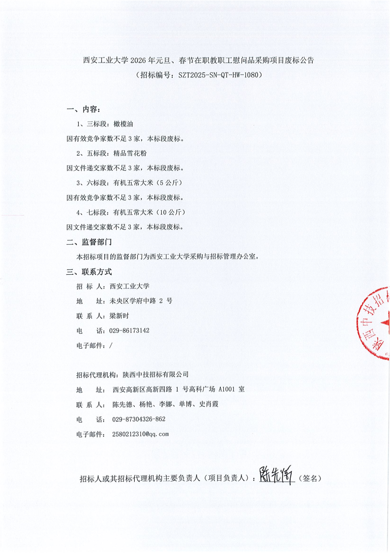 西安工业大学2026年元旦、春节在职教职工慰问品采购项目废标公告