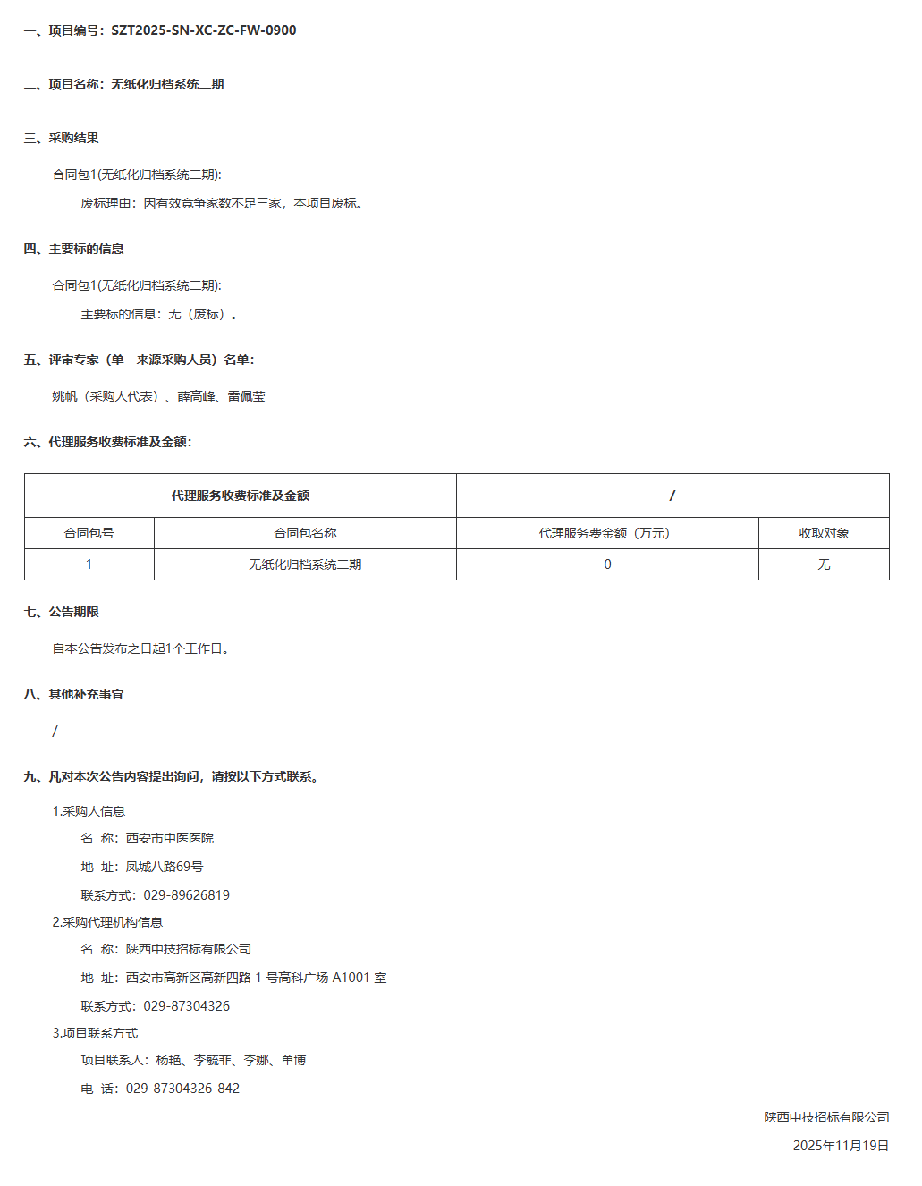 西安市中医医院无纸化归档系统二期废标公告