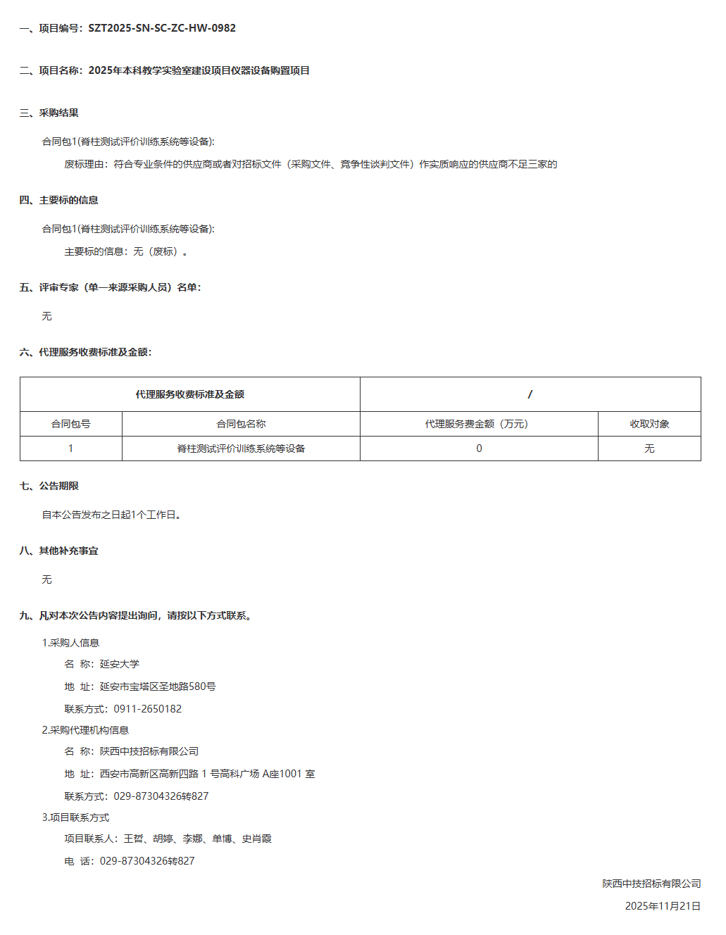 延安大学2025年本科教学实验室建设项目仪器设备购置项目废标公告
