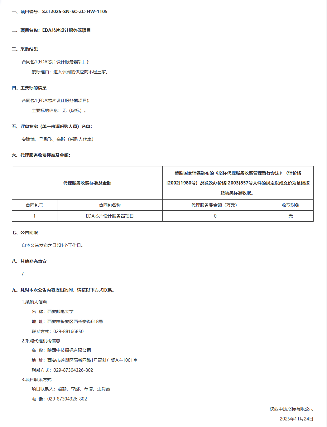 西安邮电大学EDA芯片设计服务器项目结果公告