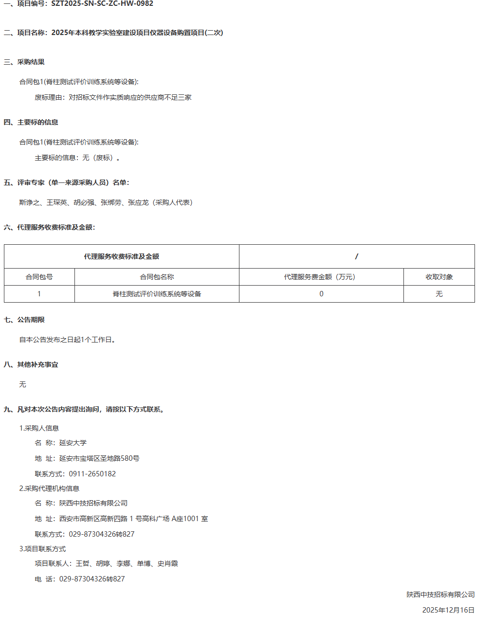 延安大学2025年本科教学实验室建设项目仪器设备购置项目(二次)结果公告