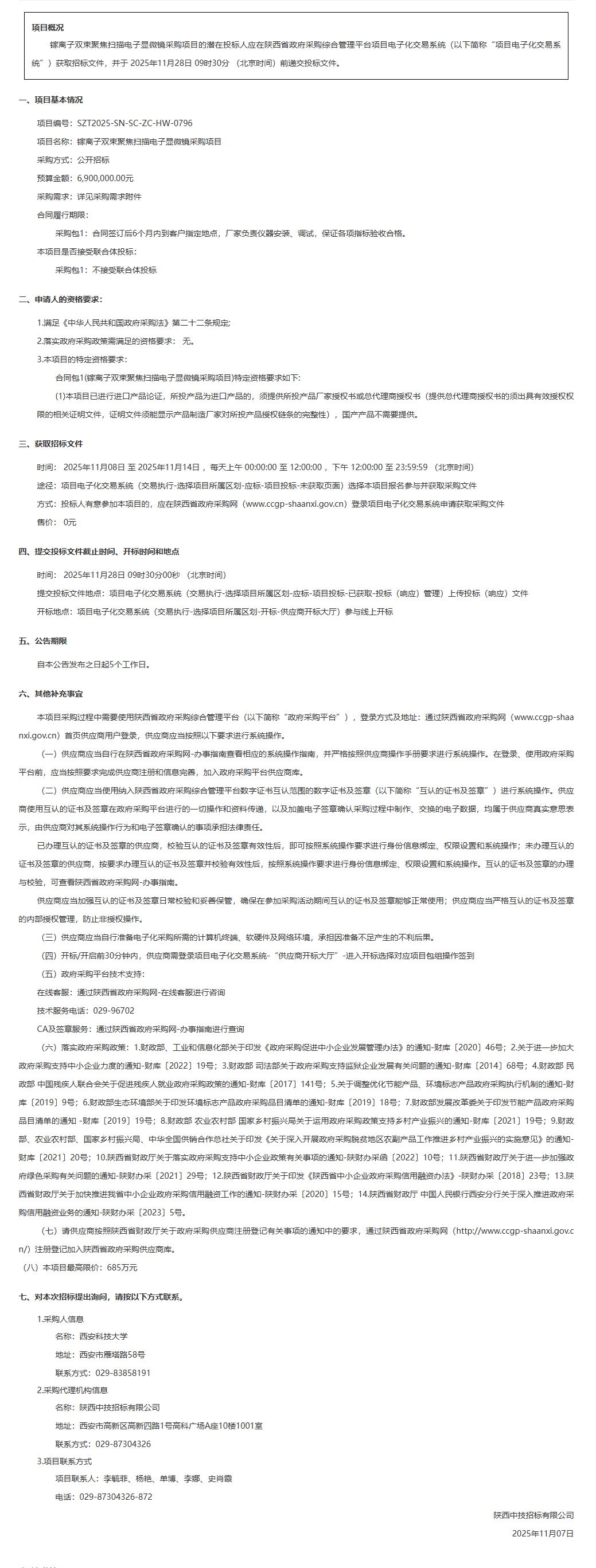 西安电子科技大学多机位多模态成像检测一体化平台项目(二次)公开招标公告
