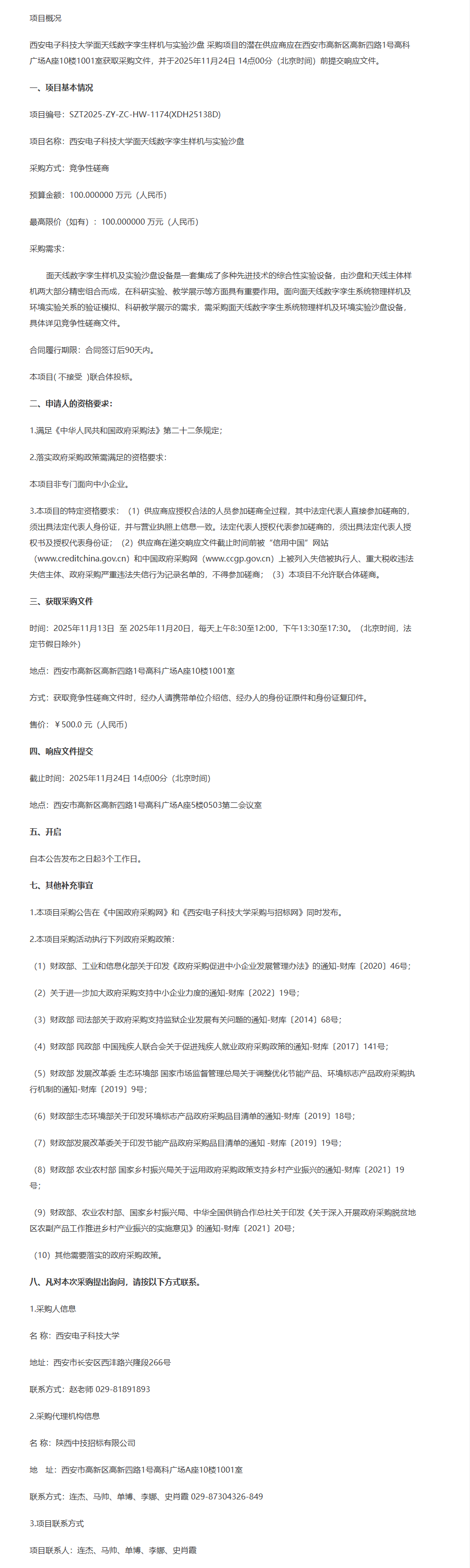 西安电子科技大学面天线数字孪生样机与实验沙盘竞争性磋商