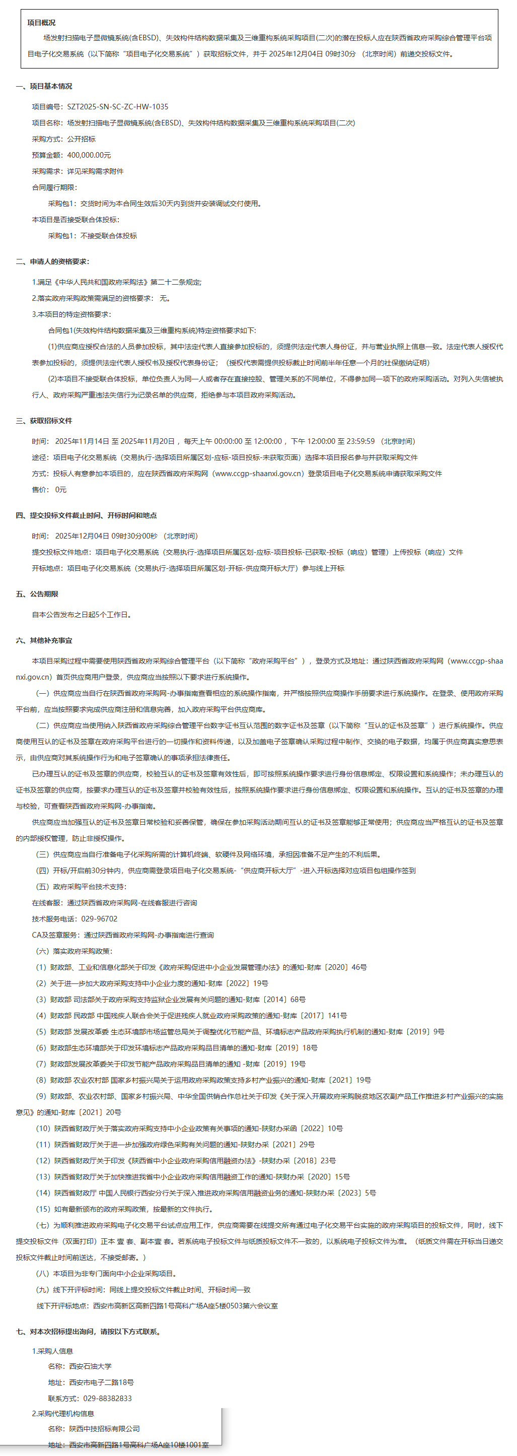 西安石油大学场发射扫描电子显微镜系统(含EBSD)、失效构件结构数据采集及三维重构系统采购项目(二次)招标公告
