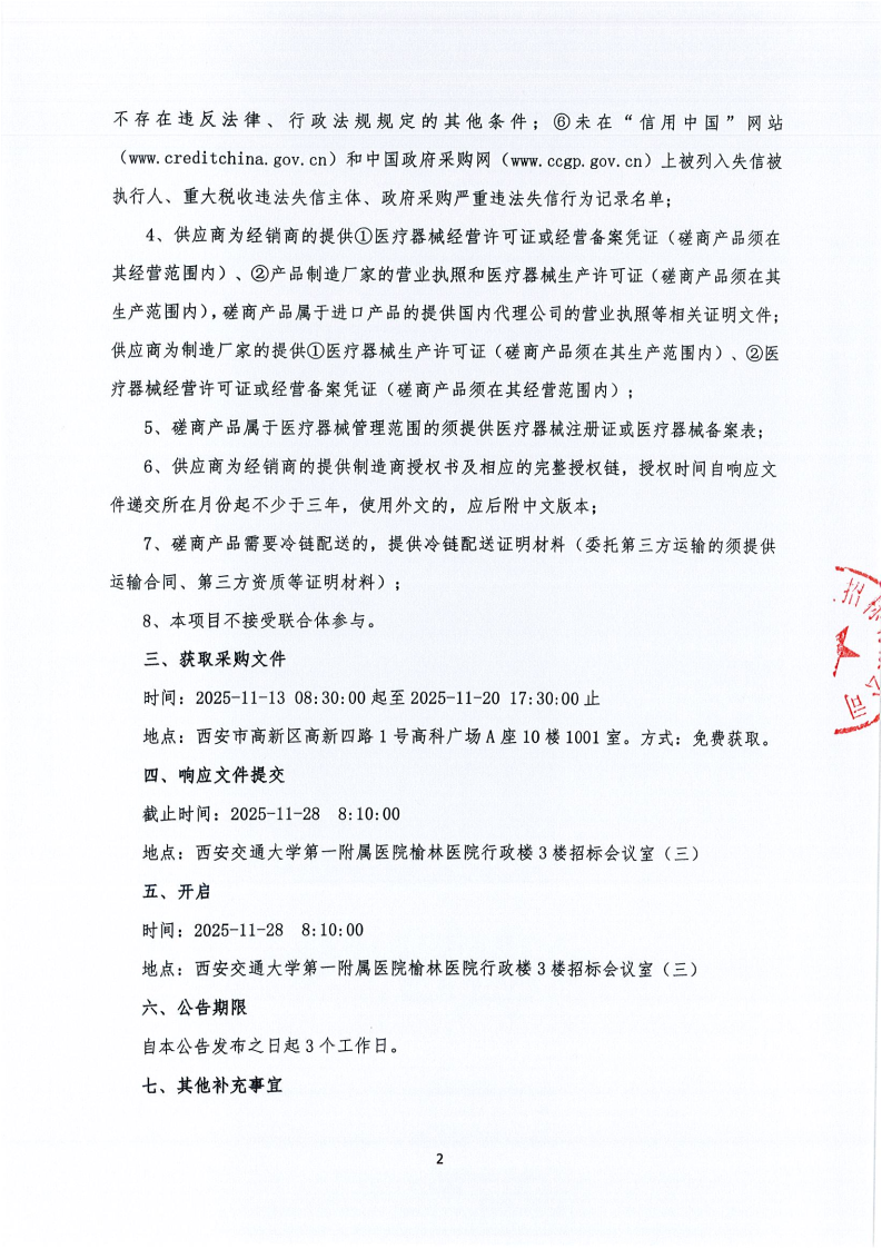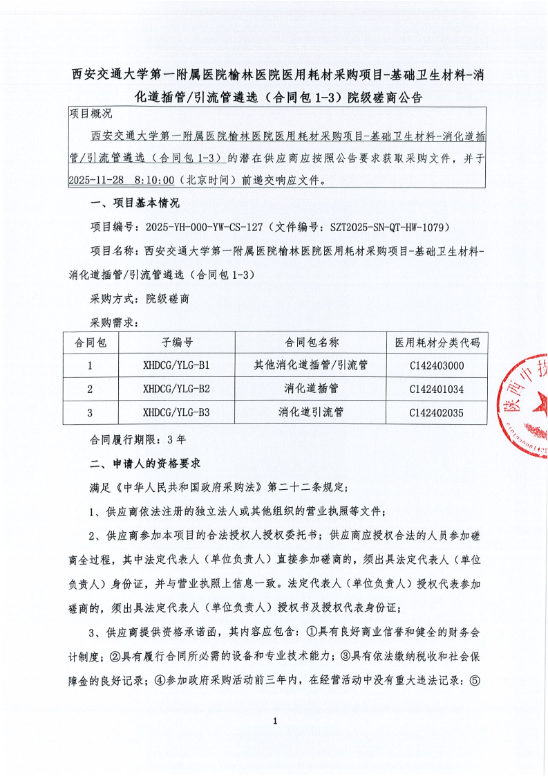西安交通大学第一附属医院榆林医院医用耗材采购项目-基础卫生材料-消化道插管引流管遴选(合同包1-3)院级磋商公告