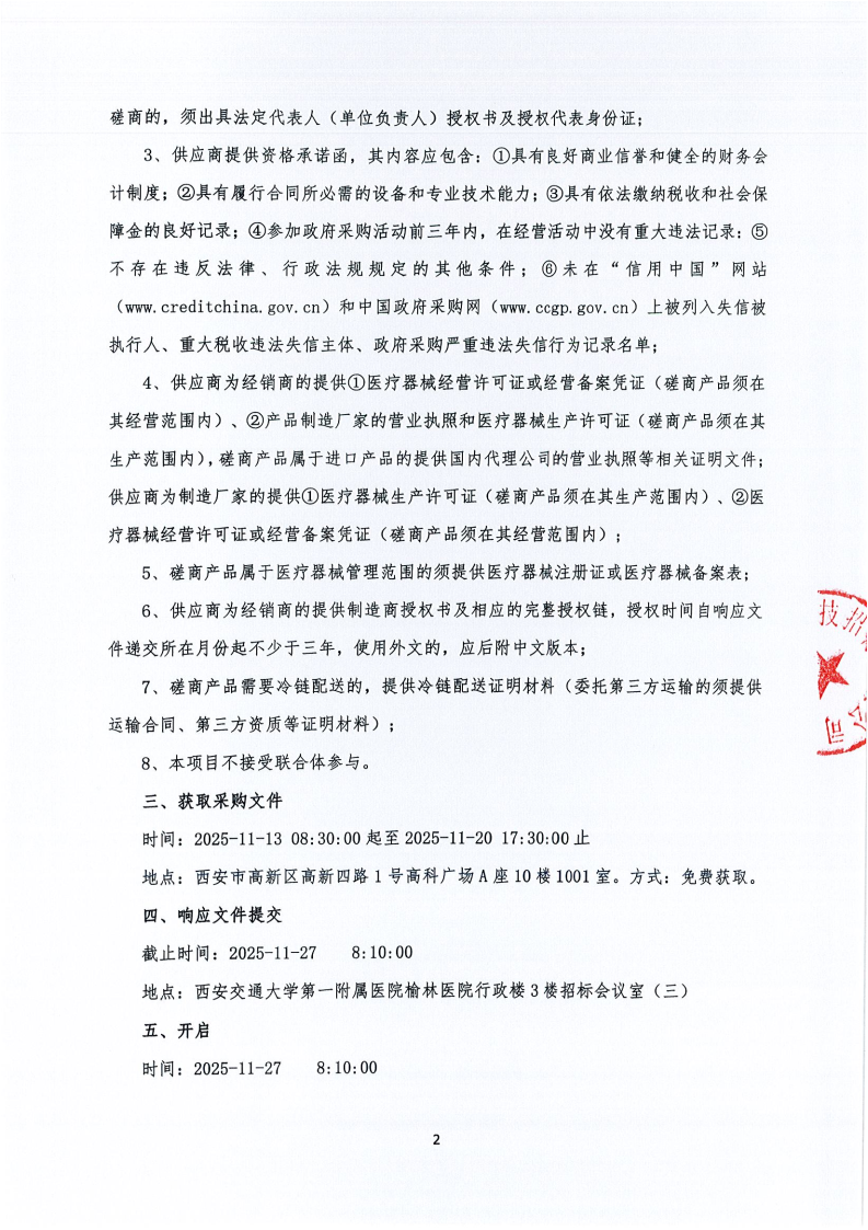西安交通大学第一附属医院榆林医院医用耗材采购项目-基础卫生材料-消化道插管引流管遴选(合同包1-3)院级磋商公告
