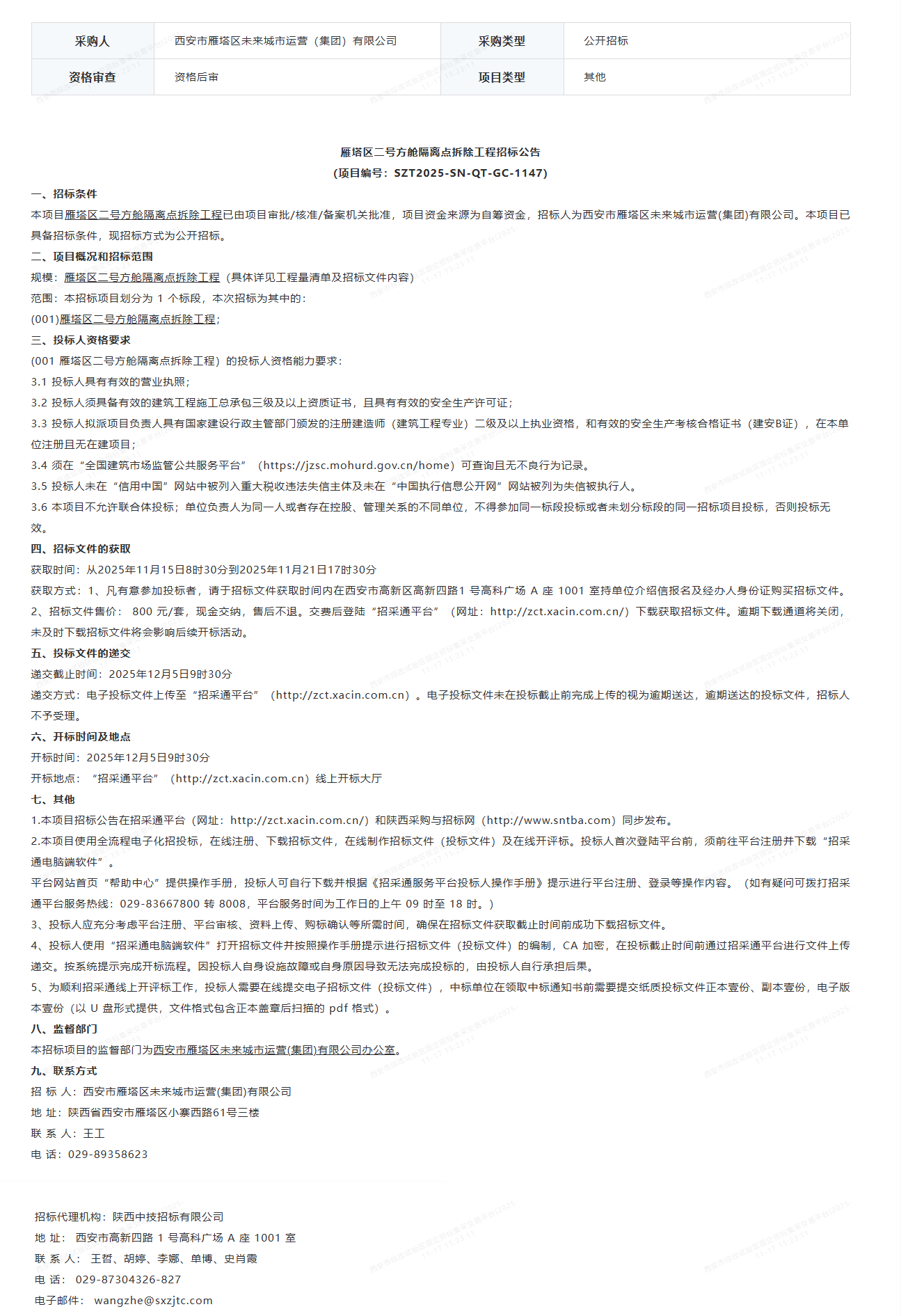 雁塔区二号方舱隔离点拆除工程公开招标公告