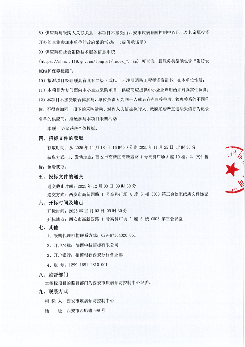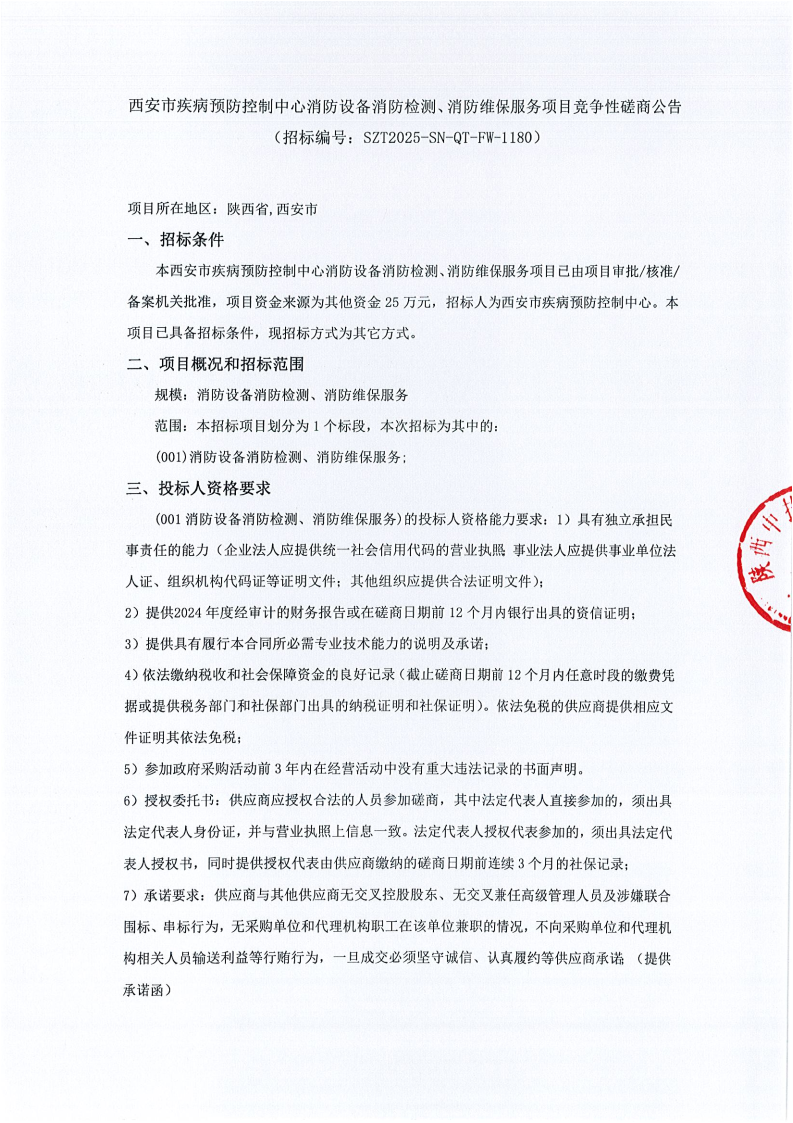 西安市疾病预防控制中心消防设备消防检测、消防维保服务项目竞争性磋商公告