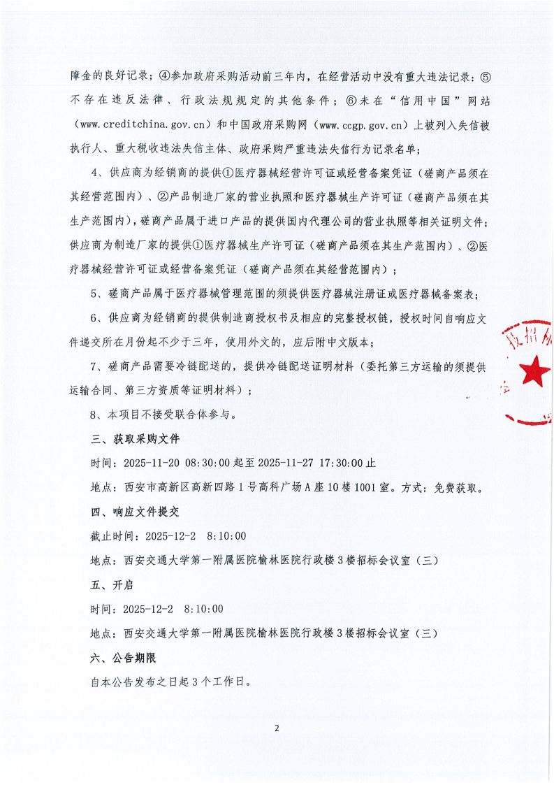 西安交通大学第一附属医院榆林医院医用耗材采购项目-基础卫生材料-引流袋遴选(合同包1-2)院级磋商公告