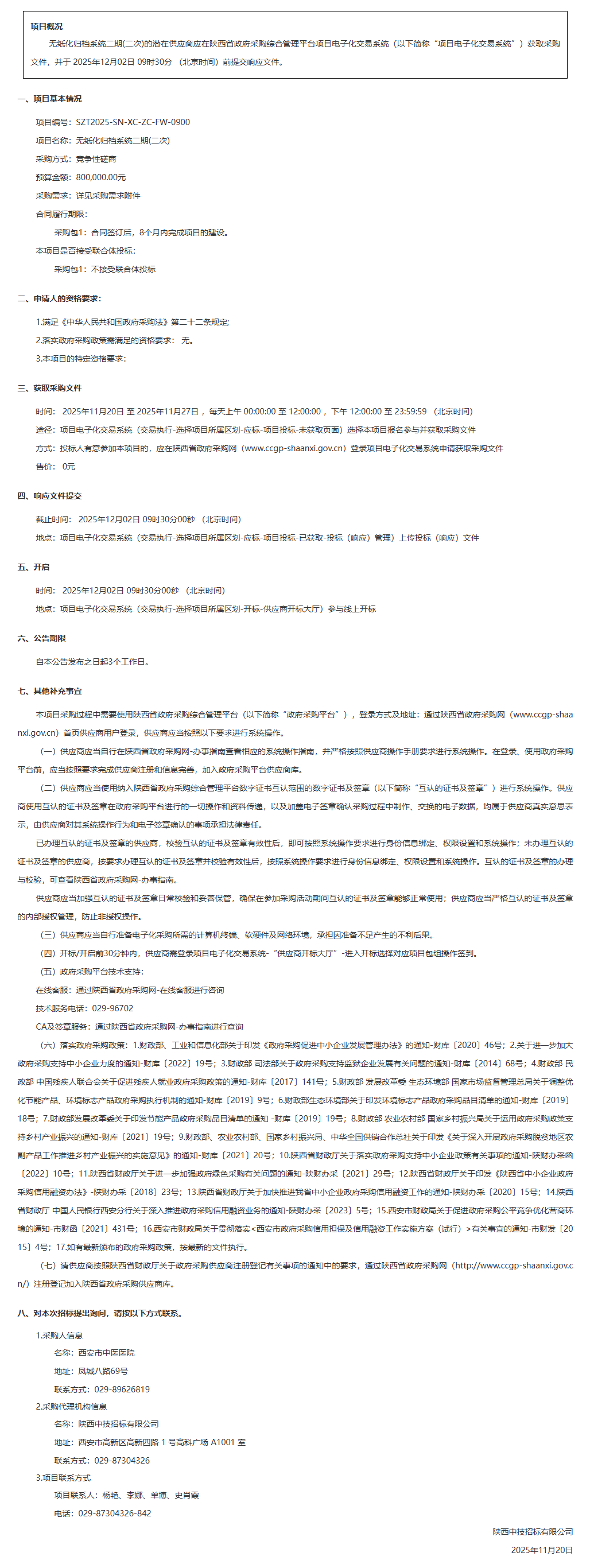 西安市中医医院无纸化归档系统二期(二次)竞争性磋商公告