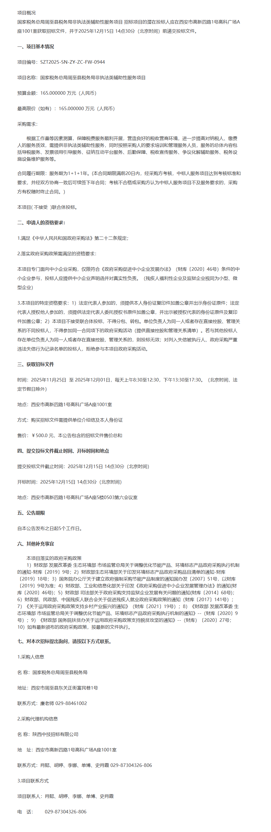 国家税务总局周至县税务局非执法类辅助性服务项目(二次)公开招标公告
