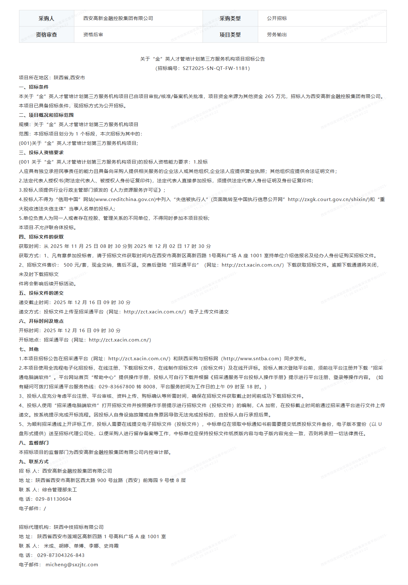 西安高新金控集团及下属公司2026年度法律服务律师事务所相关服务项目竞争谈判公告