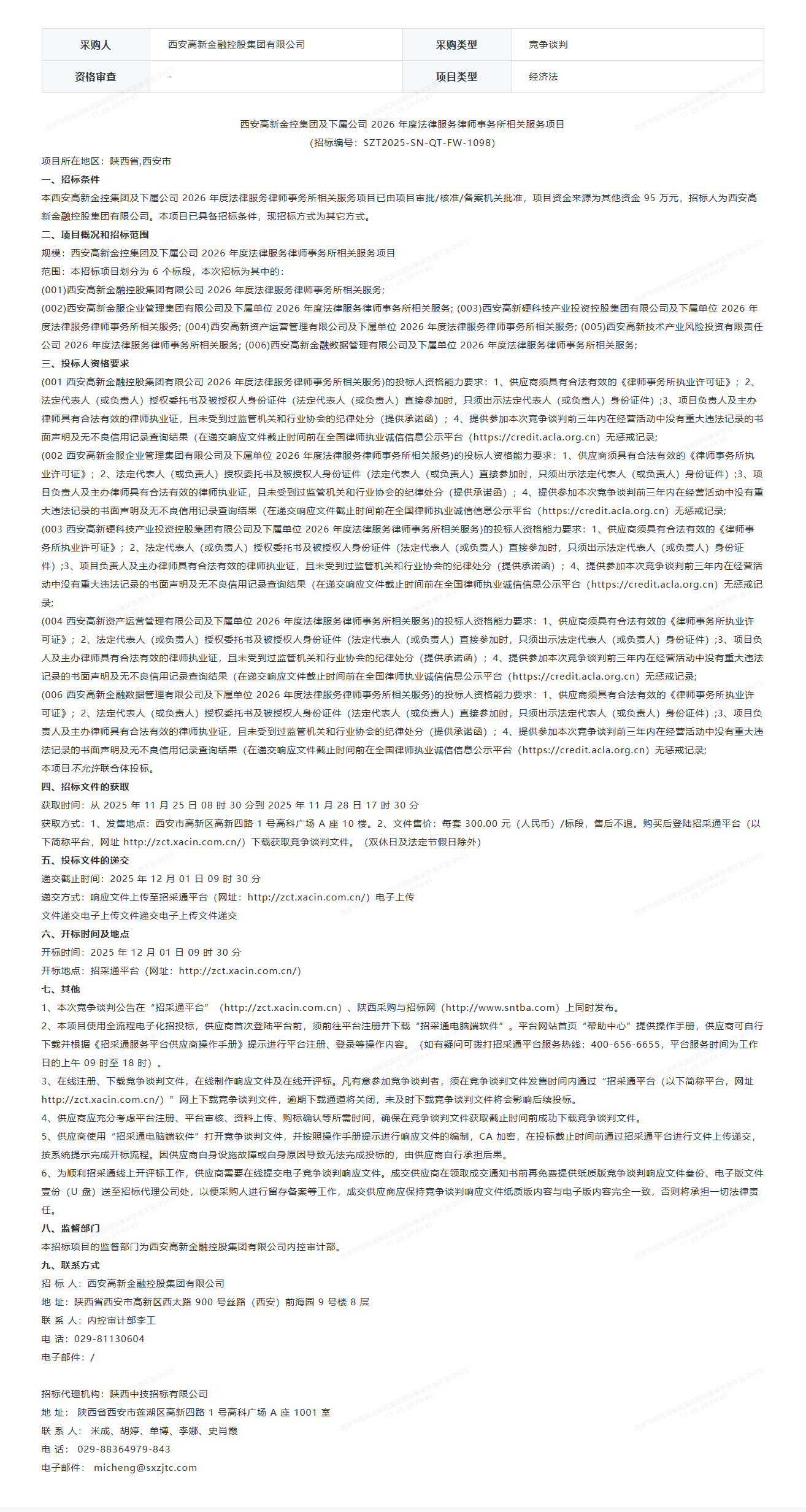 西安高新金控集团及下属公司2026年度法律服务律师事务所相关服务项目竞争谈判公告