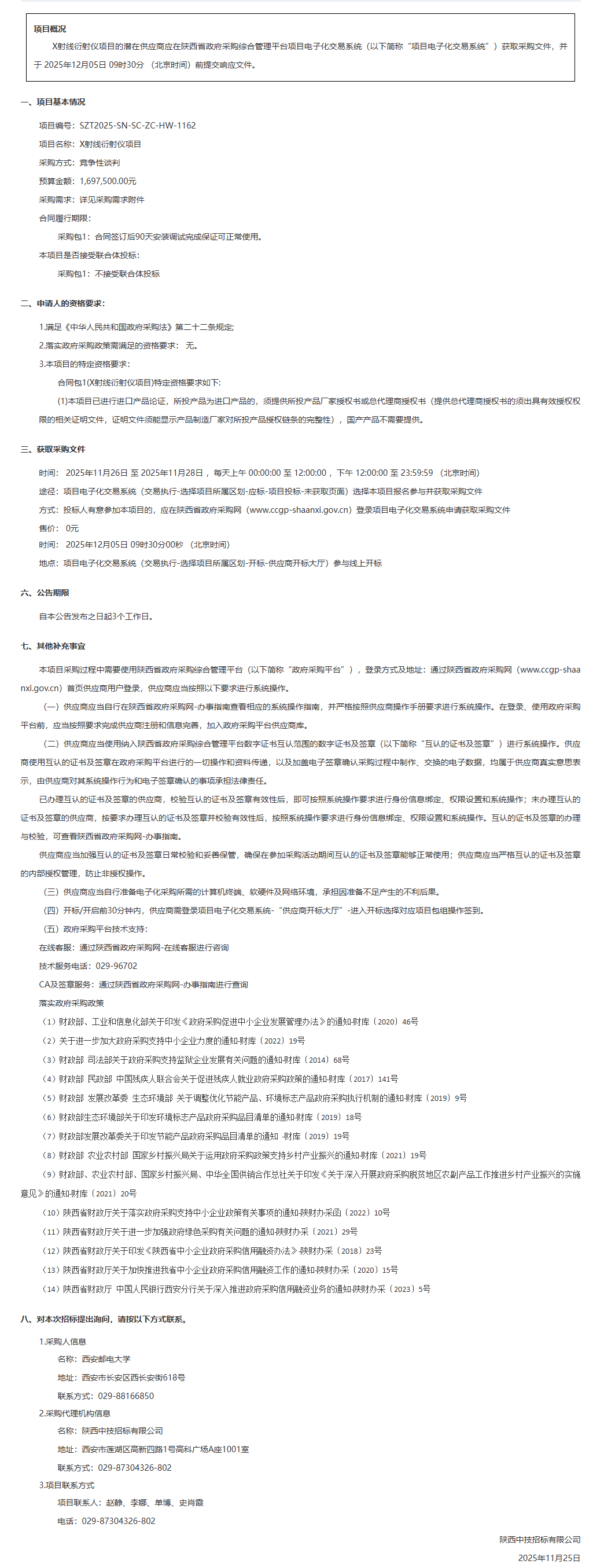 西安邮电大学X射线衍射仪项目竞争性谈判公告