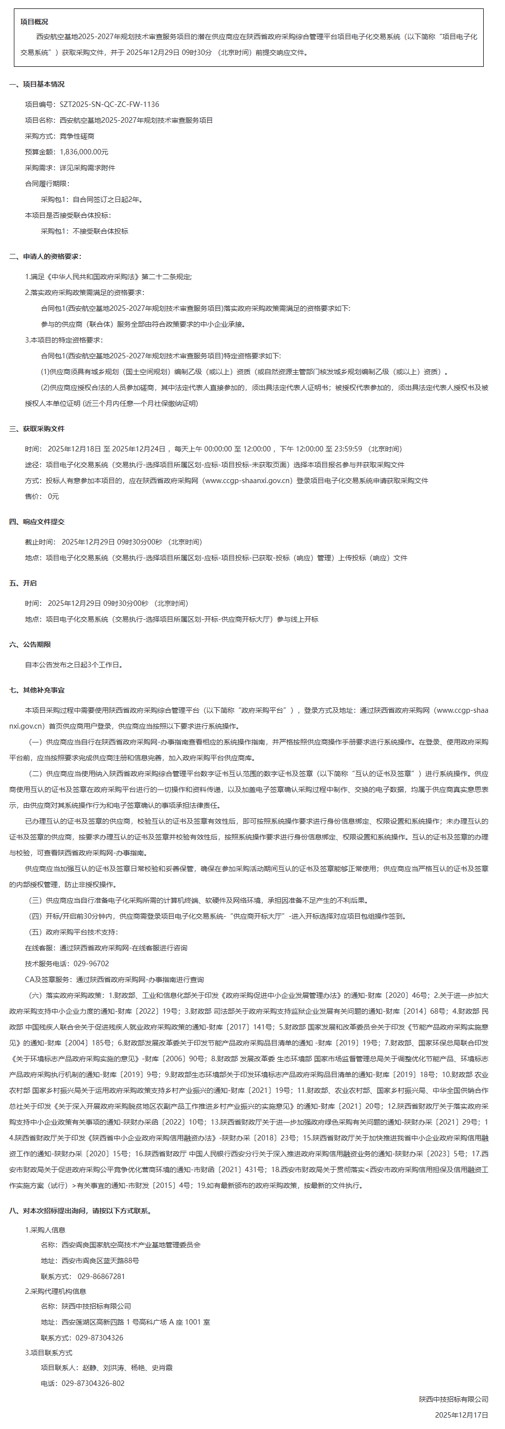 西安阎良国家航空高技术产业基地管理委员会西安航空基地2025-2027年规划技术审查服务项目竞争性磋商公告
