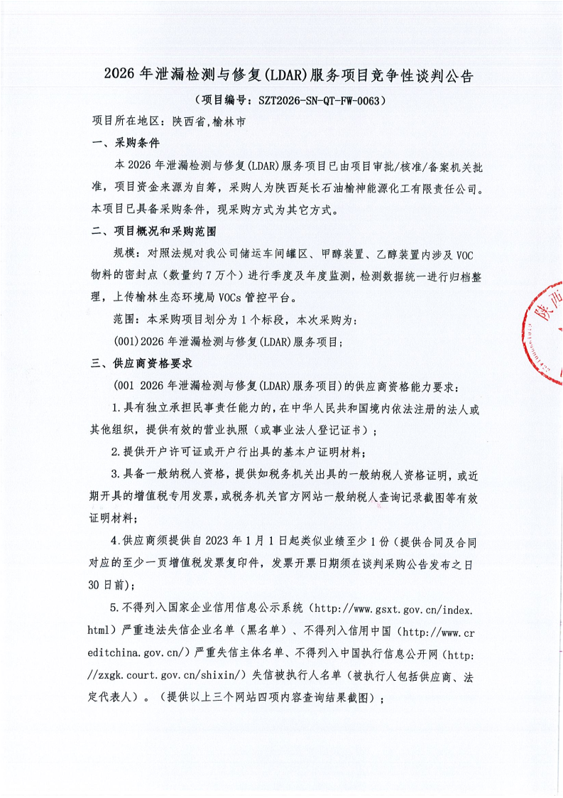2026年泄漏检测与修复(LDAR)服务项目竞争性谈判公告