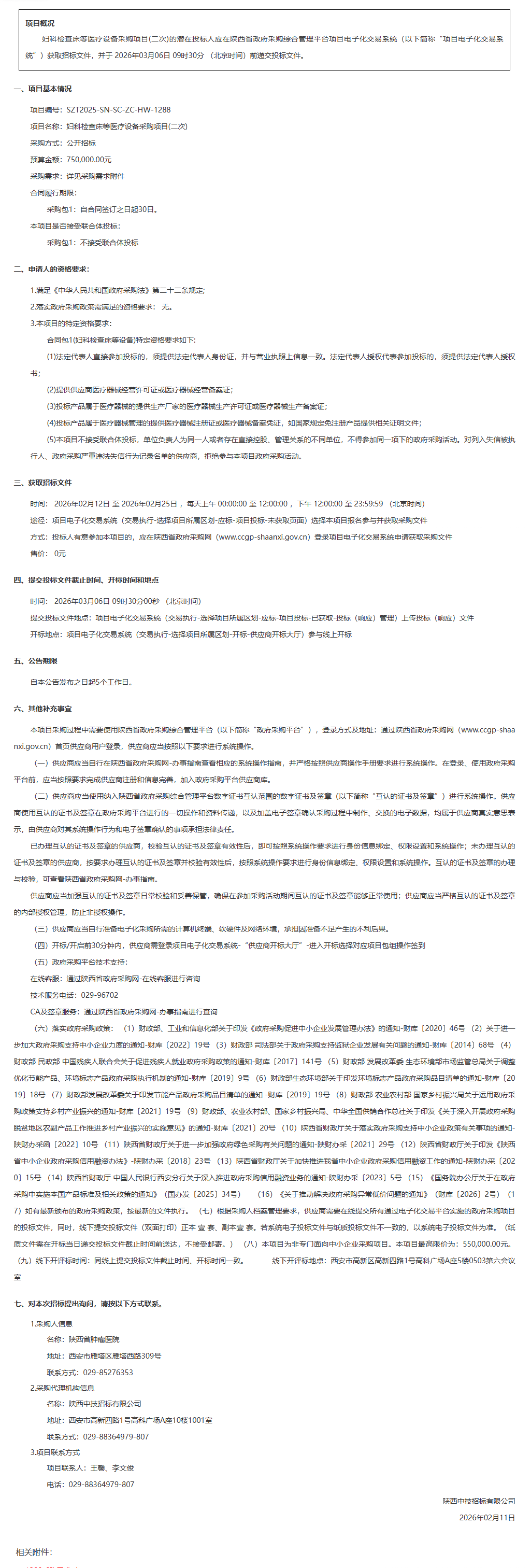 陕西省肿瘤医院妇科检查床等医疗设备采购项目(二次)招标公告