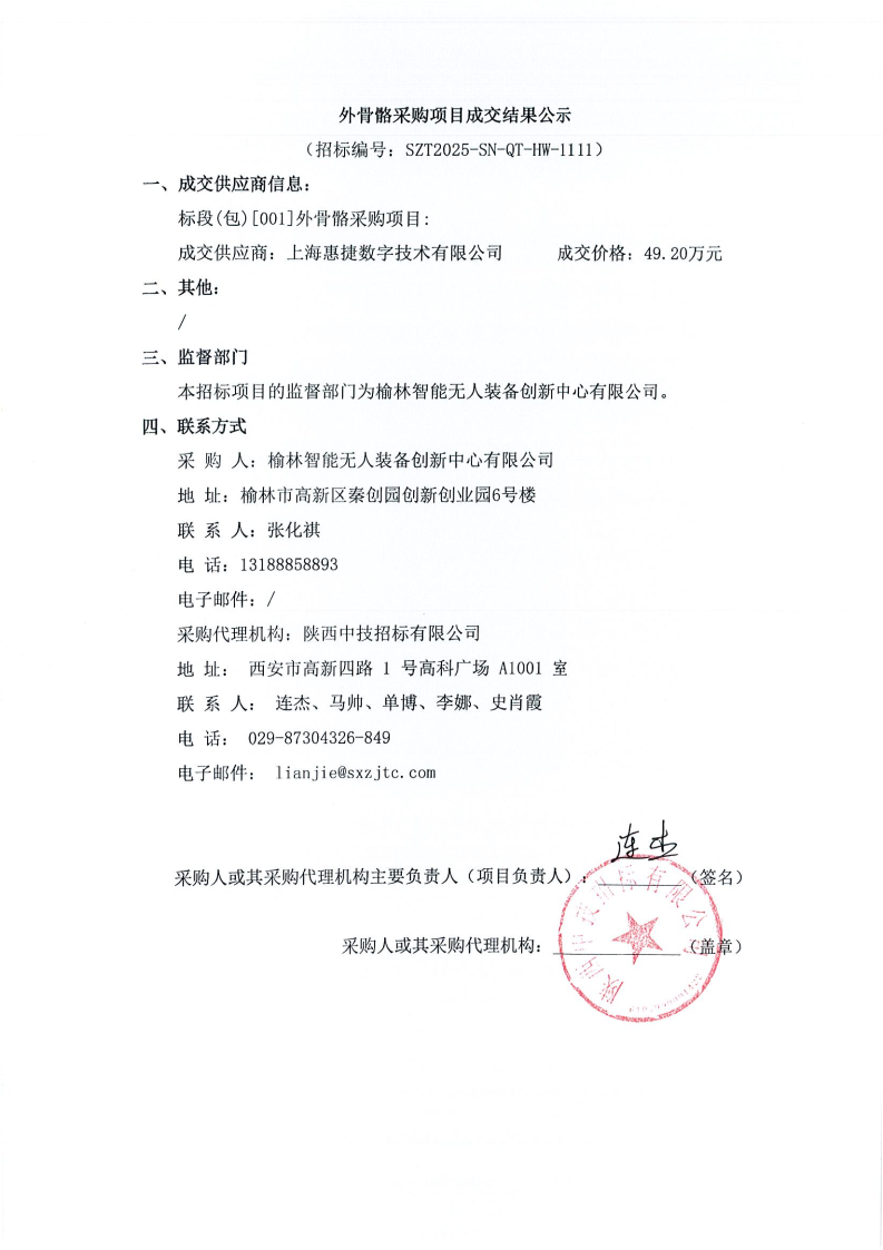 外骨骼采购项目成交结果公示
