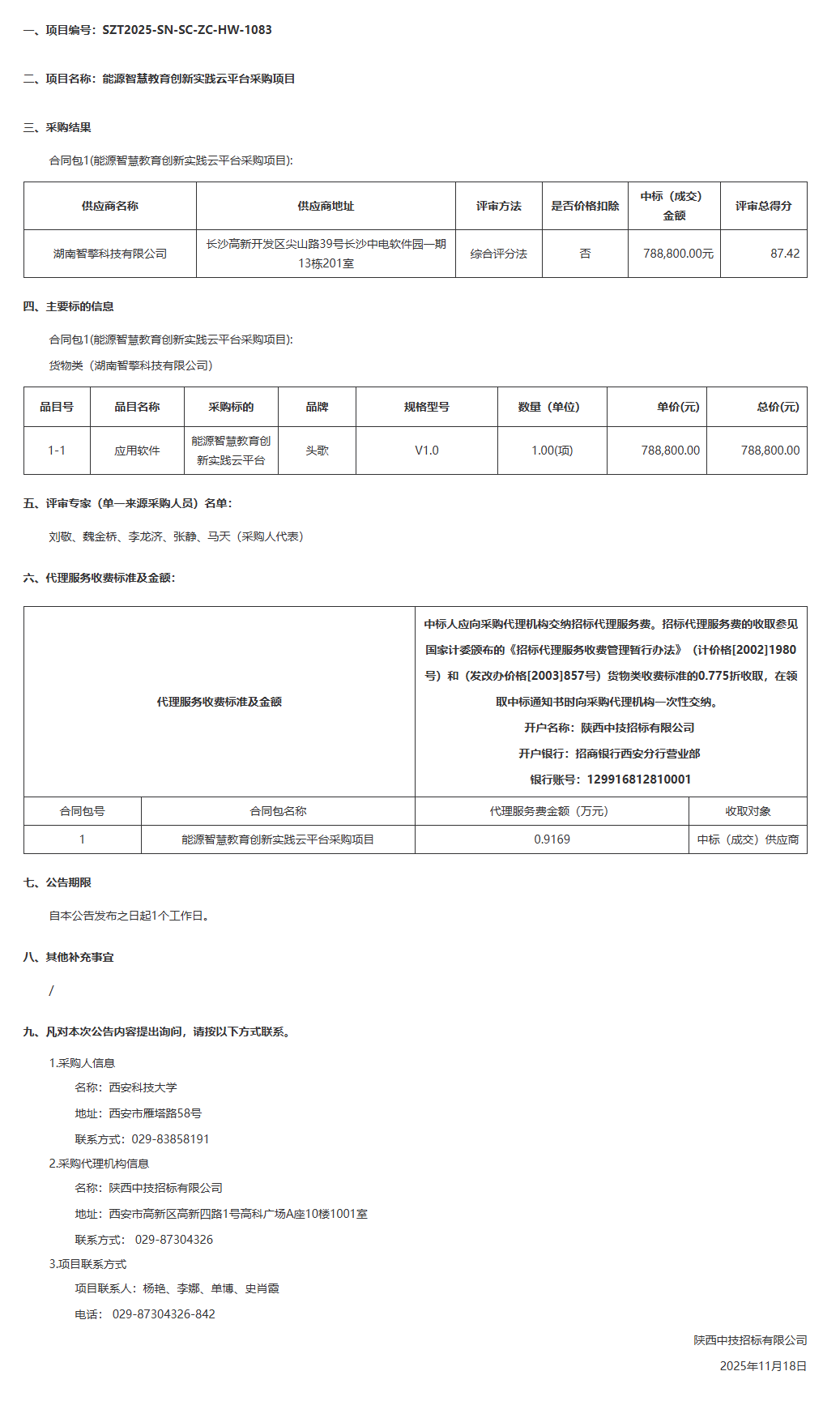西安科技大学能源智慧教育创新实践云平台采购项目中标(成交)结果公告