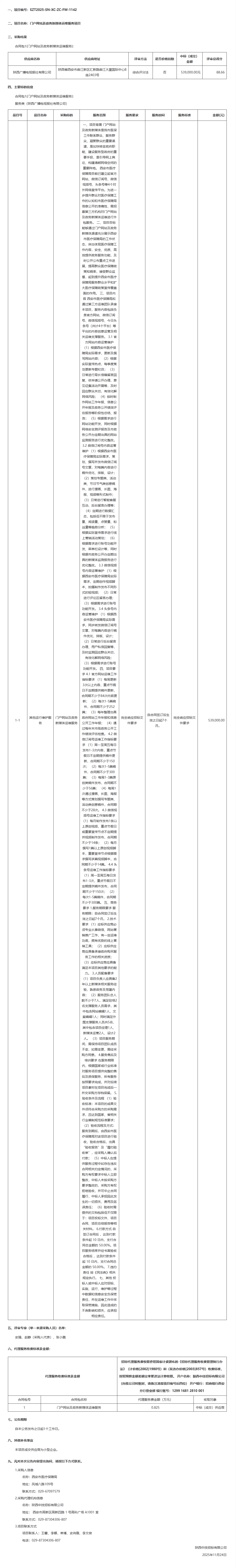 西安市医疗保障局门户网站及政务新媒体运维服务项目中标(成交)结果公告