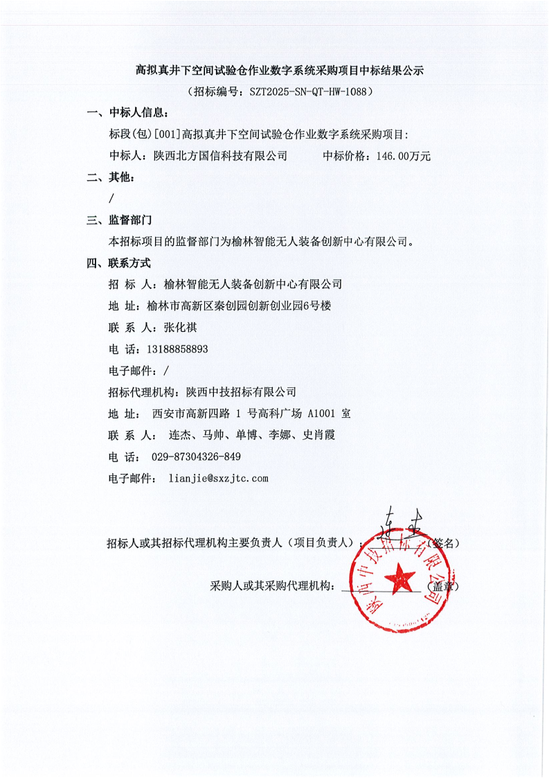 高拟真井下空间试验仓作业数字系统采购项目中标结果公示