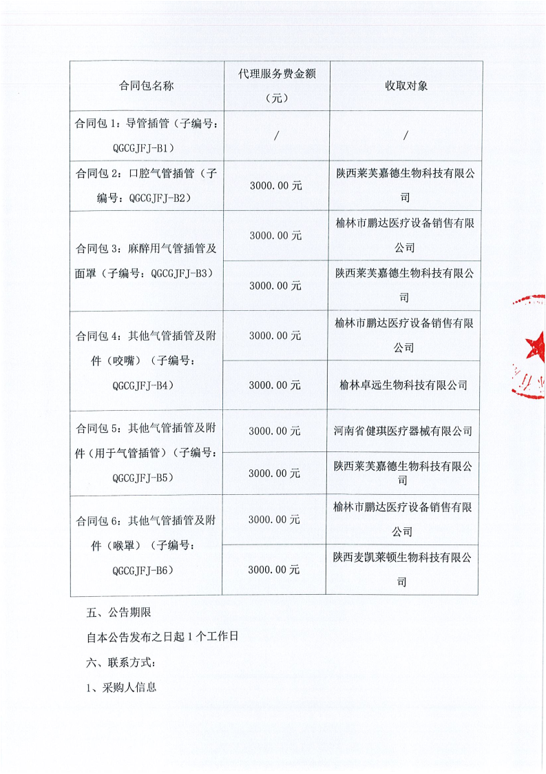 西安交通大学第一附属医院榆林医院医用耗材采购项目-基础卫生材料-气管插管及附件遴选(合同包1-6)院级磋商结果公告