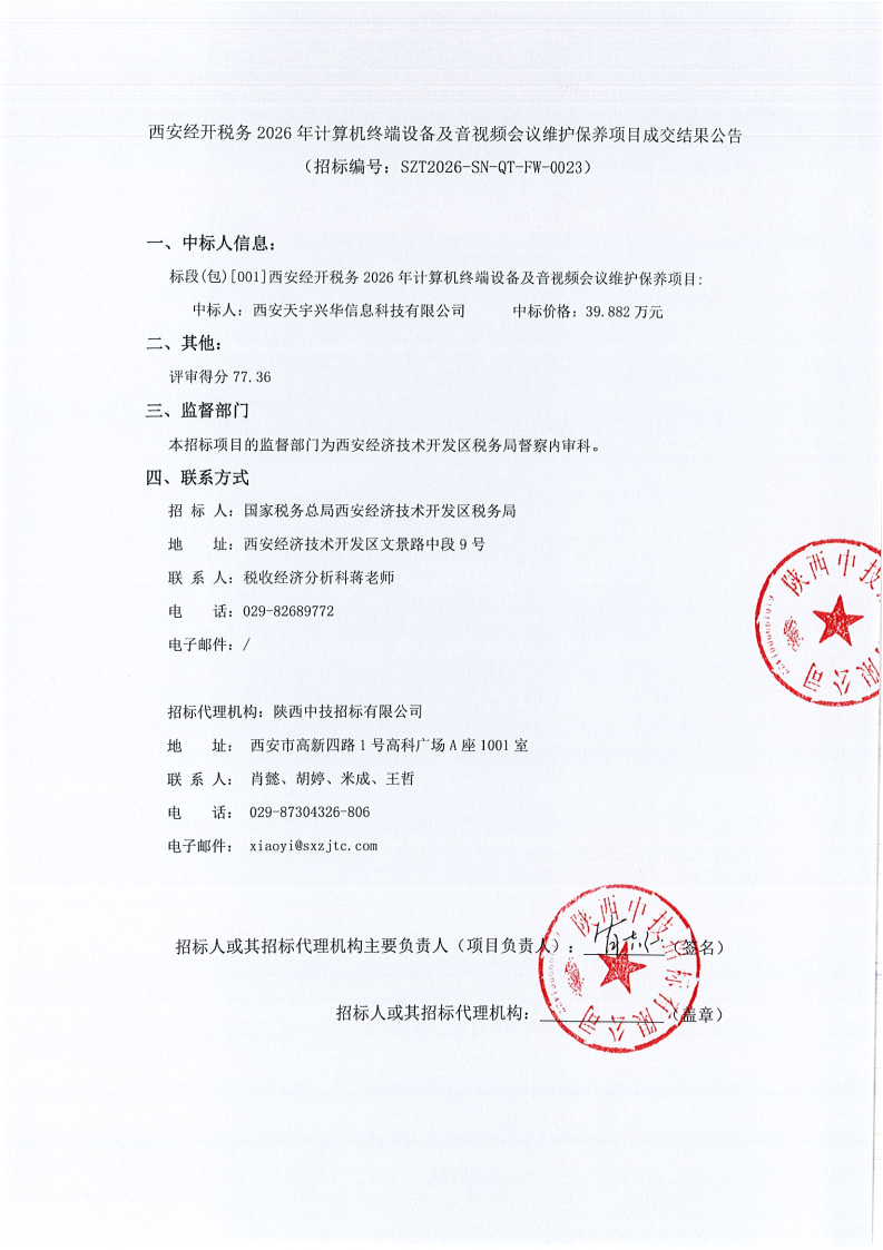 西安经开税务2026年计算机终端设备及音视频会议维护保养项目成交结果公告