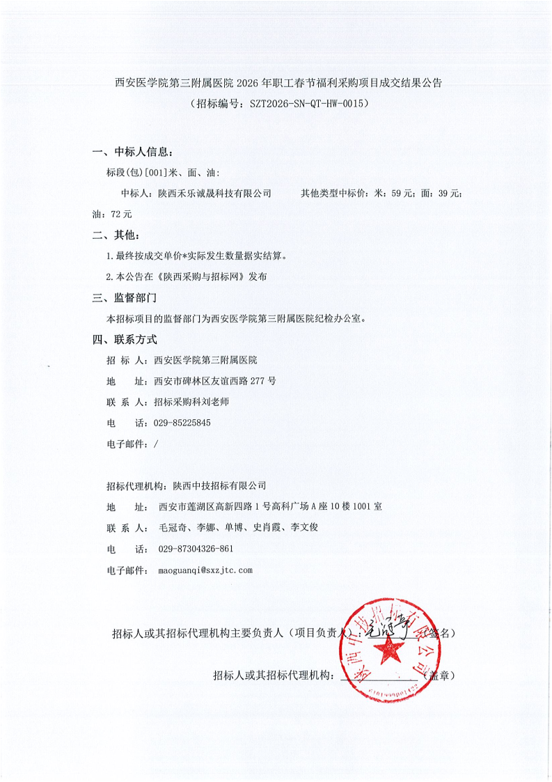 西安医学院第三附属医院2026年职工春节福利采购项目成交结果公告