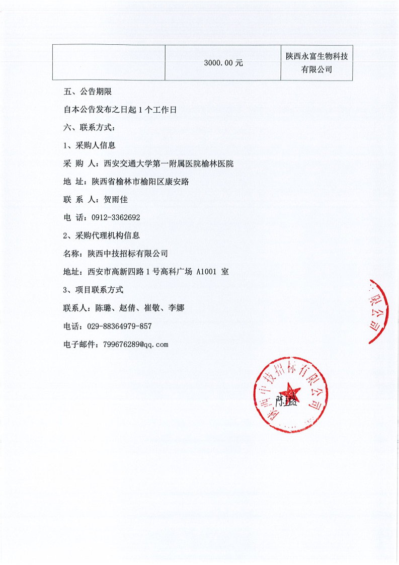 西安交通大学第一附属医院榆林医院医用耗材采购项目-基础卫生材料-药液转移器遴选(二次)(合同包1)院级磋商结果公告
