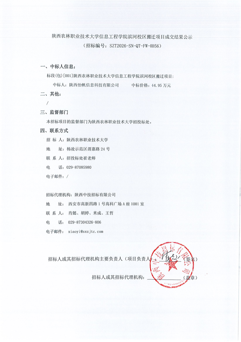 陕西农林职业技术大学信息工程学院滨河校区搬迁项目成交结果公示