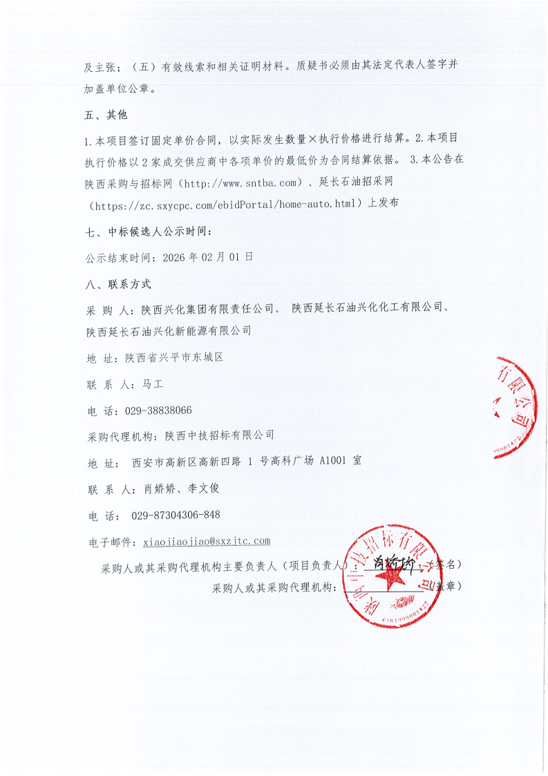 兴化集团、化工、新能源机械阀维修框架(单价)项目成交候选人公示
