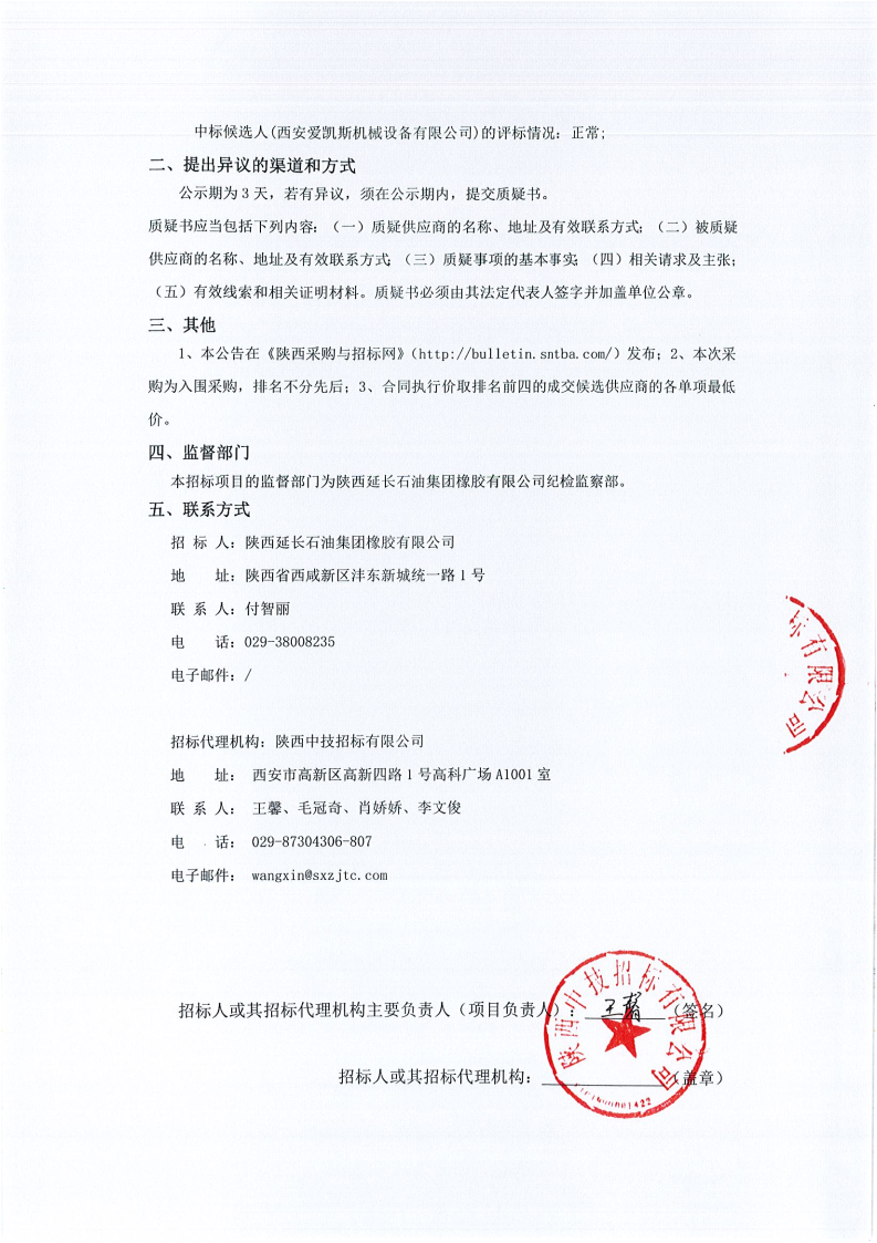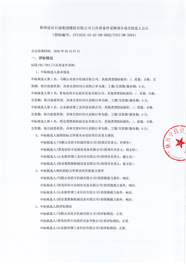陕西延长石油集团橡胶有限公司刀具类备件采购项目成交候选人公示