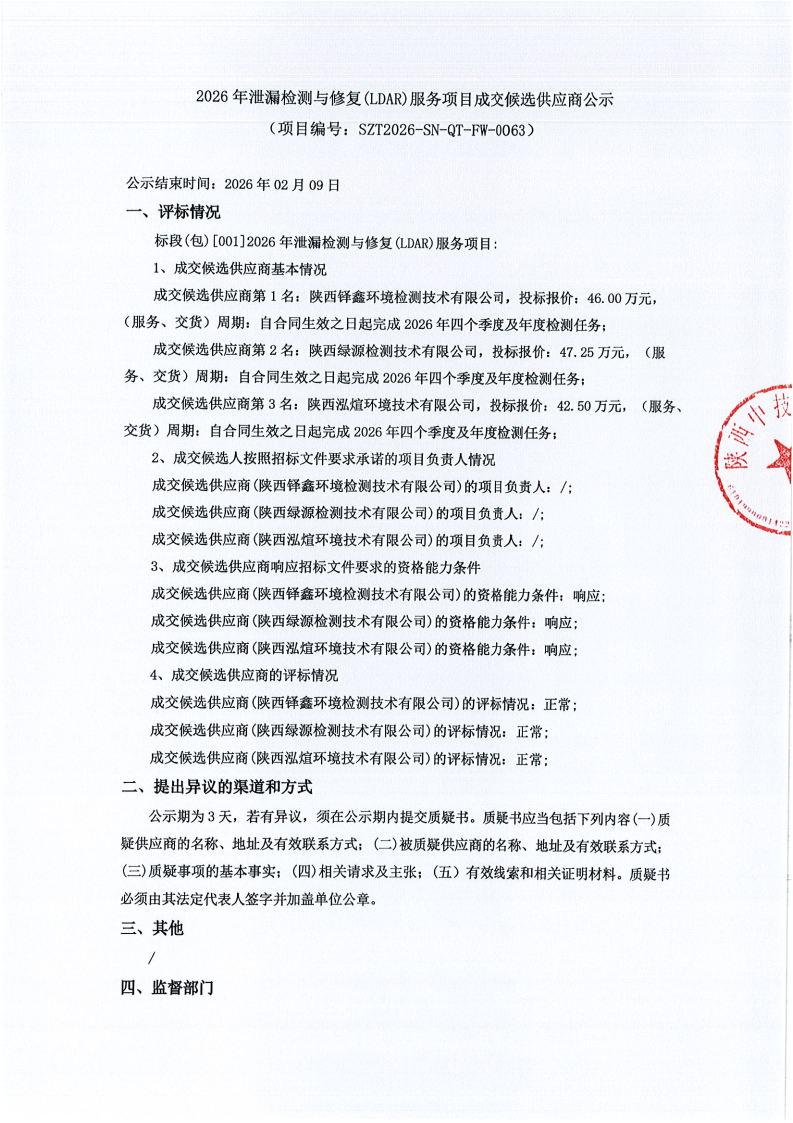 2026年泄漏检测与修复(LDAR)服务项目成交候选供应商公示