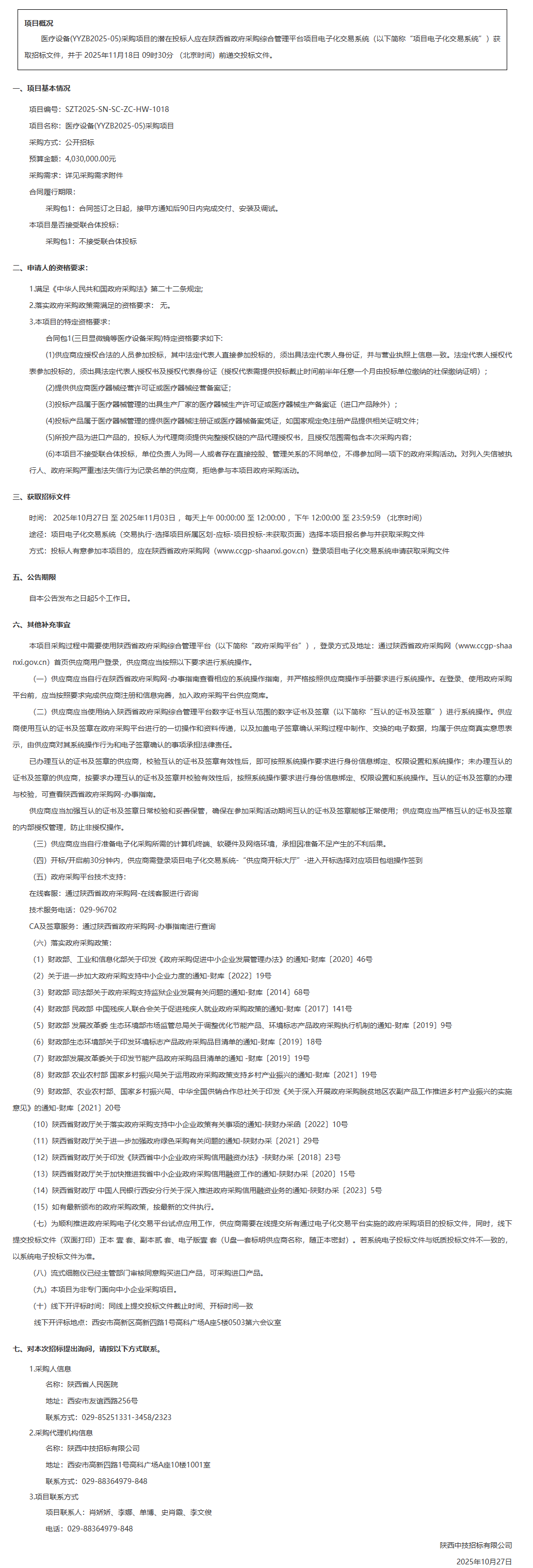 陕西省人民医院医疗设备(YYZB2025-05)采购项目招标公告