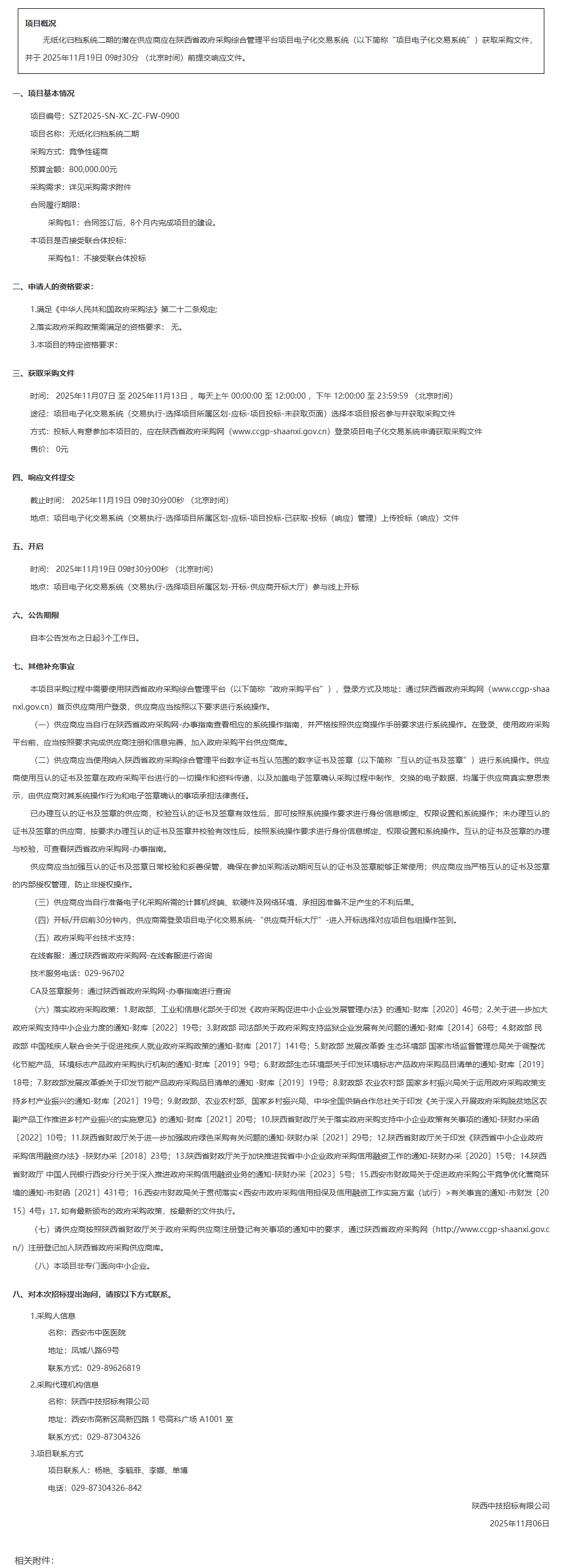 西安市中医医院无纸化归档系统二期竞争性磋商公告