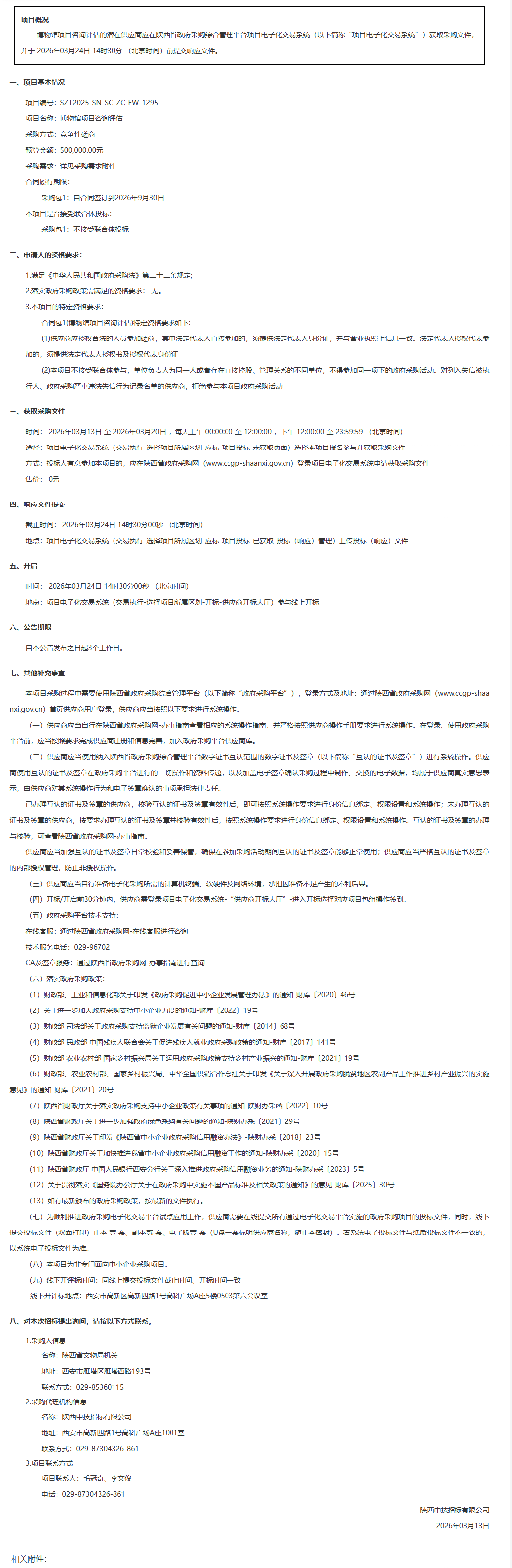 陕西省文物局机关博物馆项目咨询评估竞争性磋商公告