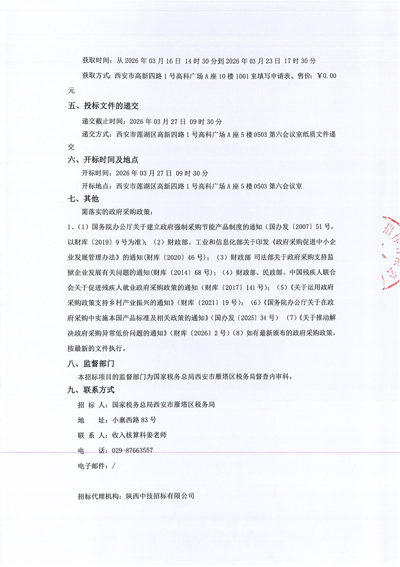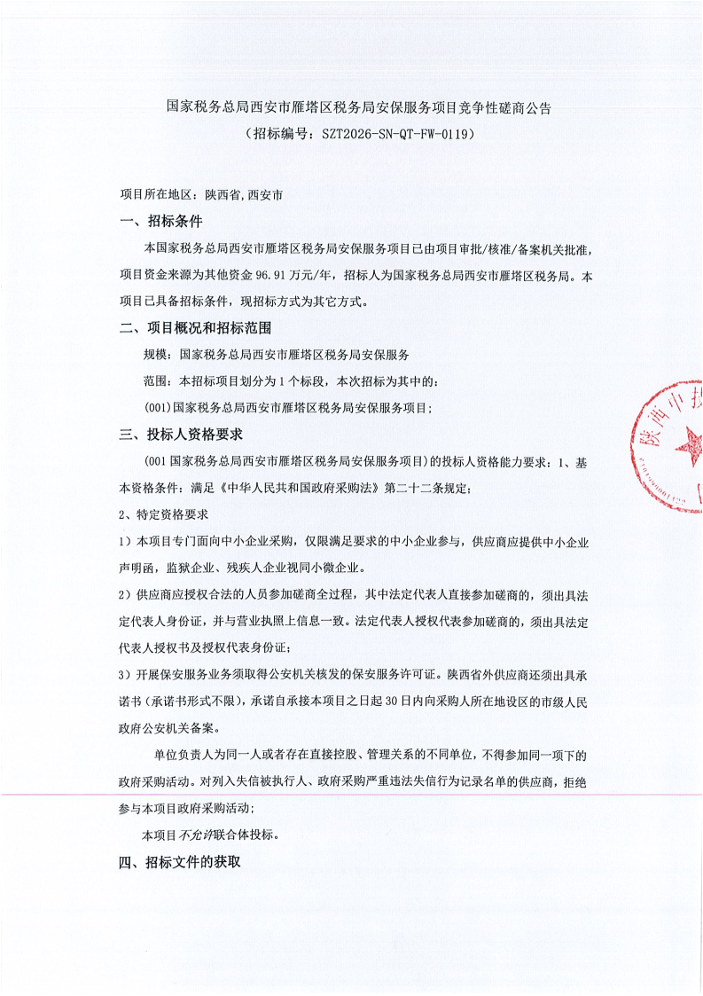 国家税务总局西安市雁塔区税务局安保服务项目竞争性磋商公告