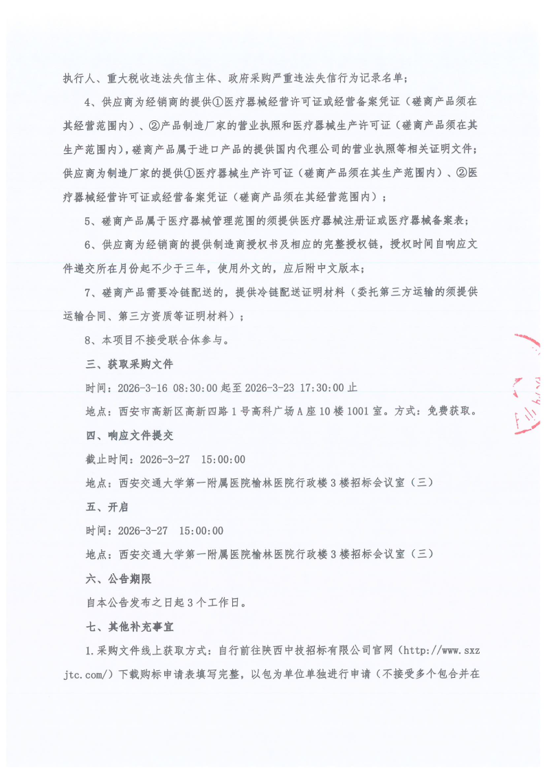 西安交通大学第一附属医院榆林医院医用耗材采购项目-EDTA-K2抗凝真空采血管、冻存管项目(合同包1)院级磋商公告