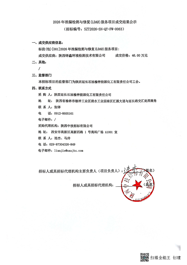 2026年泄漏检测与修复(LDAR)服务项目成交结果公示
