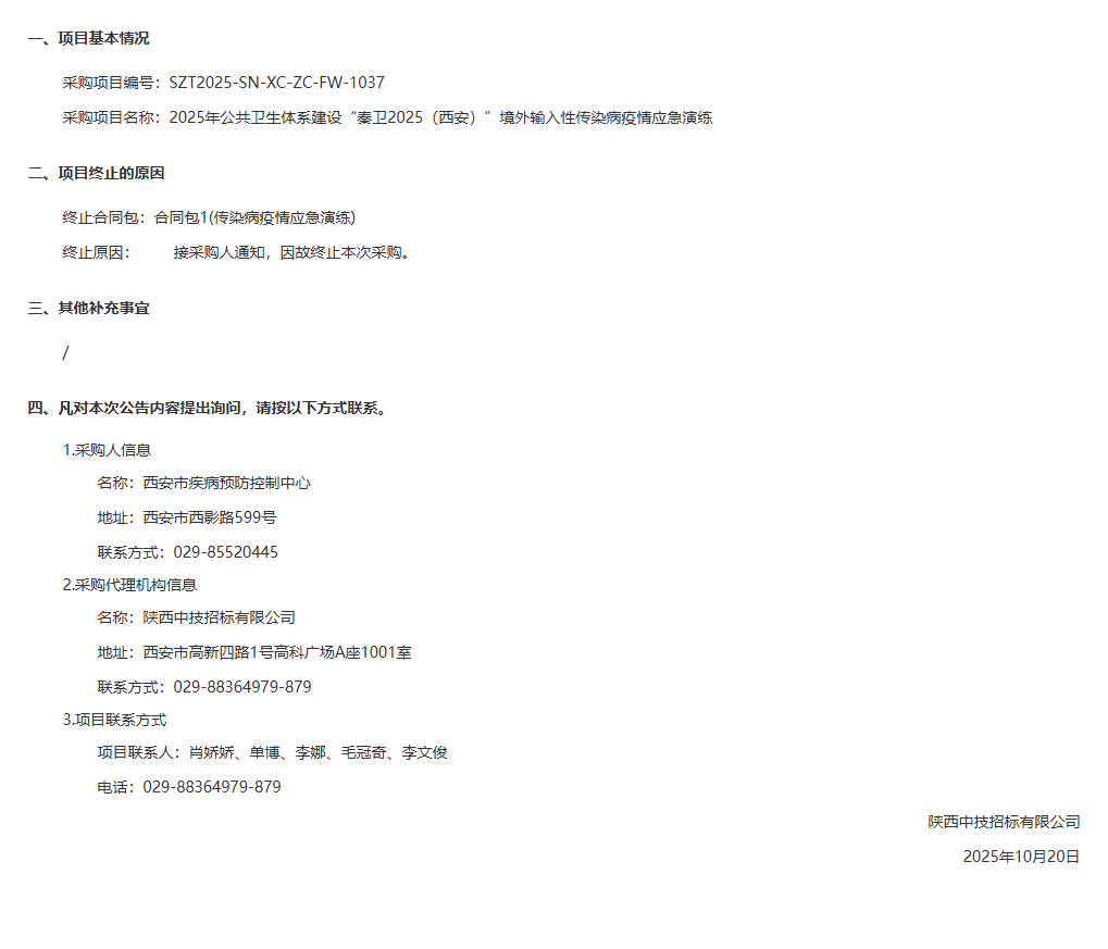 西安市疾病预防控制中心2025年公共卫生体系建设“秦卫2025(西安)”境外输入性传染病疫情应急演练终止公告