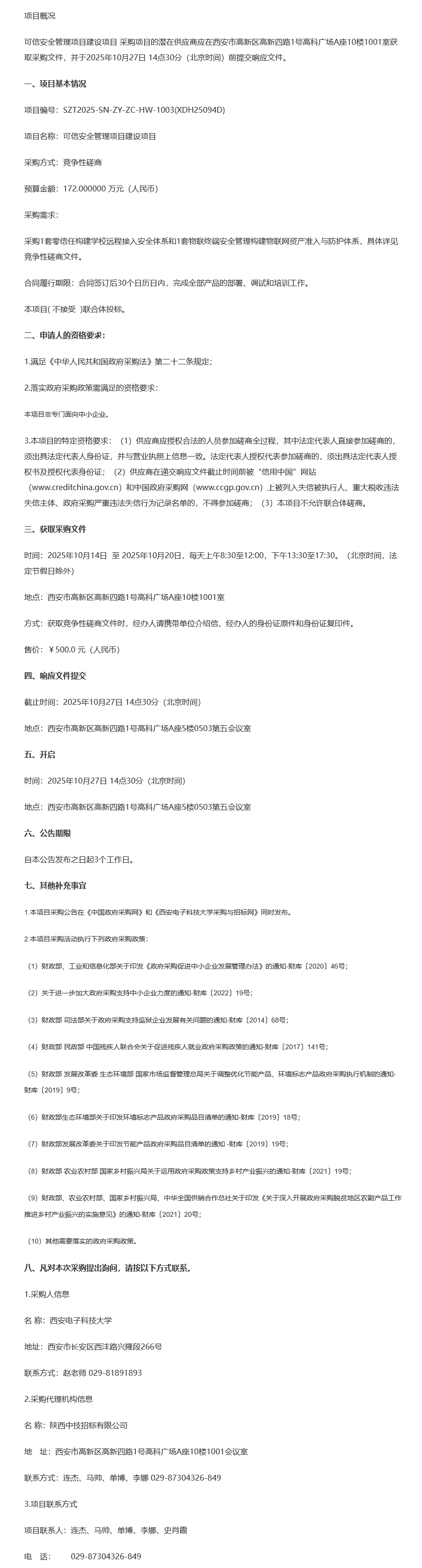 西安电子科技大学可信安全管理项目建设项目竞争性磋商公告