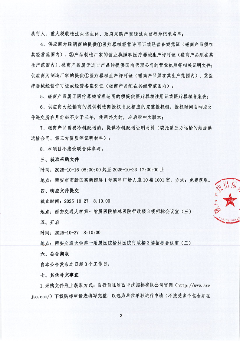 西安交通大学第一附属医院榆林医院医用耗材采购项目-血管介入治疗类材料-外周血管介入治疗材料遴选(二)(二次)(合同包1-12)院级磋商公告