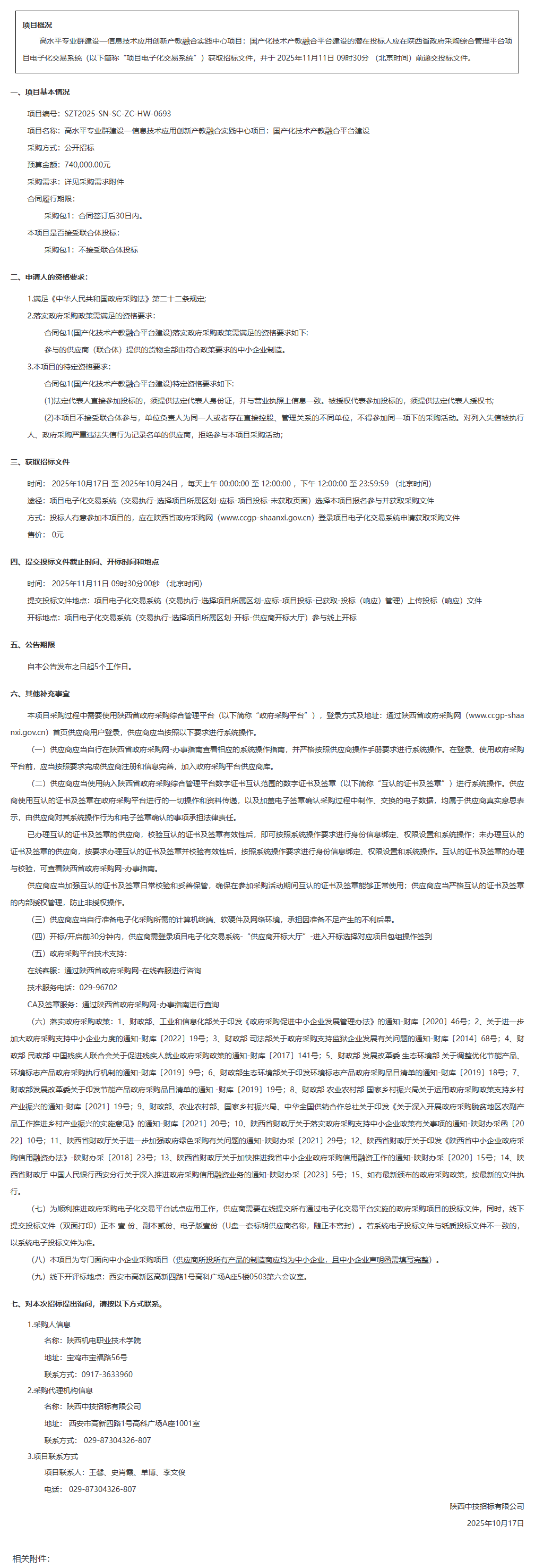 陕西机电职业技术学院高水平专业群建设—信息技术应用创新产教融合实践中心项目:国产化技术产教融合平台建设招标公告