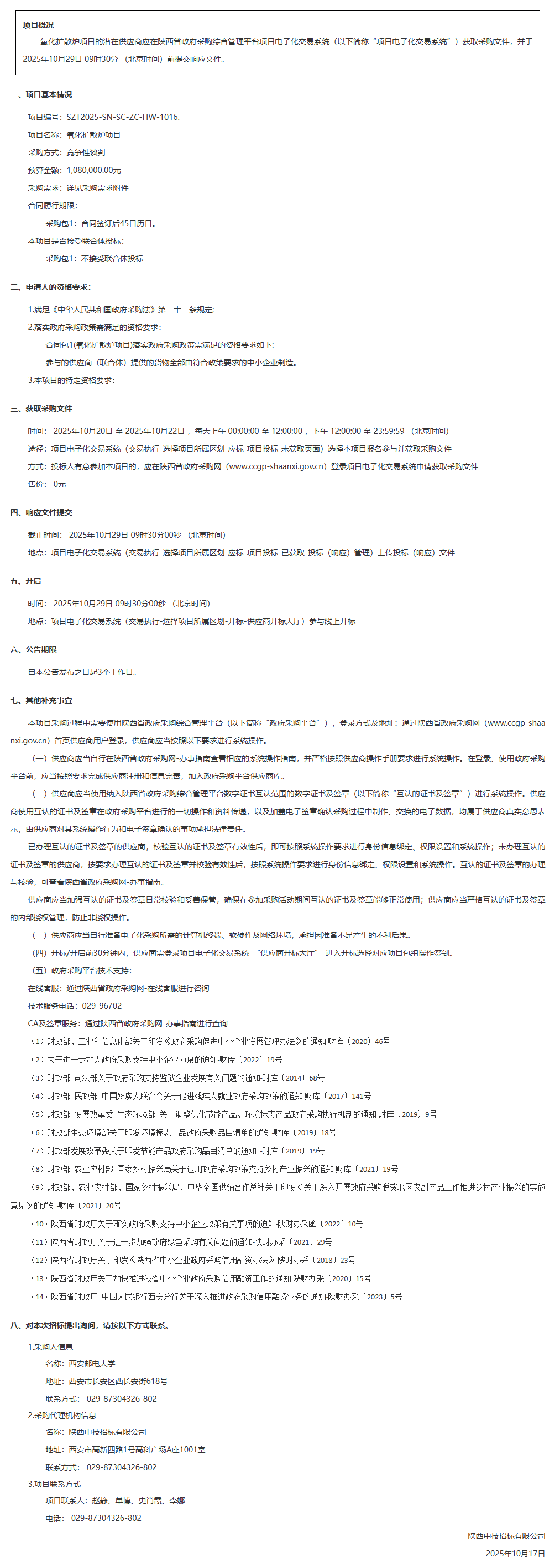 西安邮电大学氧化扩散炉项目竞争性谈判公告