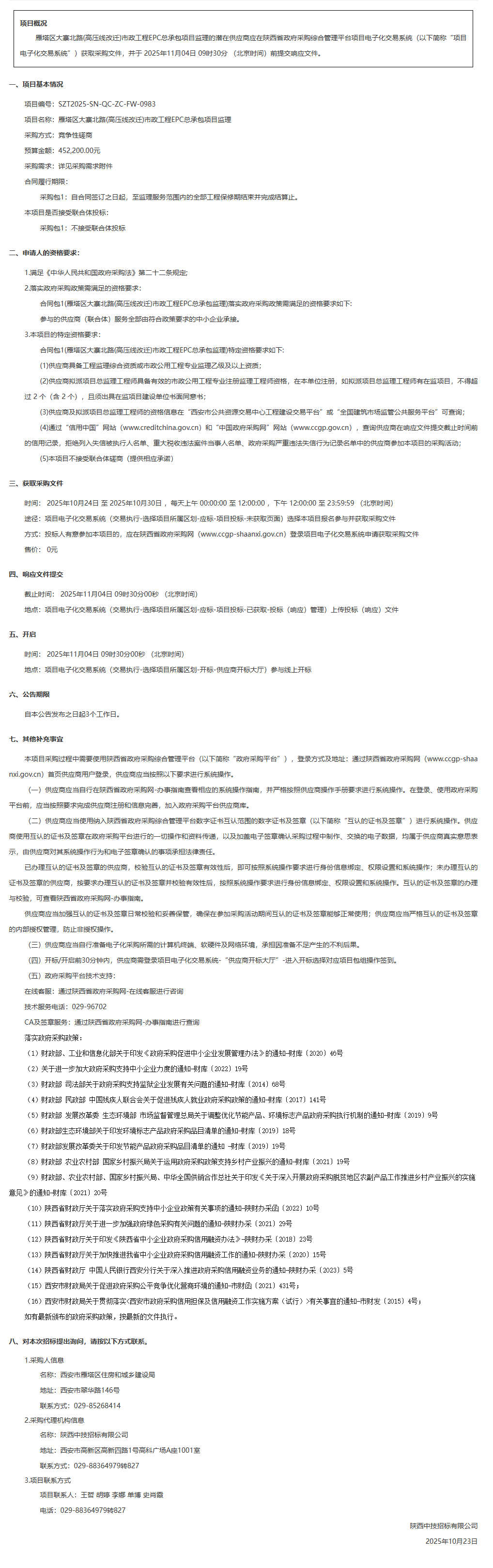 西安市雁塔区住房和城乡建设局雁塔区大寨北路(高压线改迁)市政工程EPC总承包项目监理竞争性磋商公告