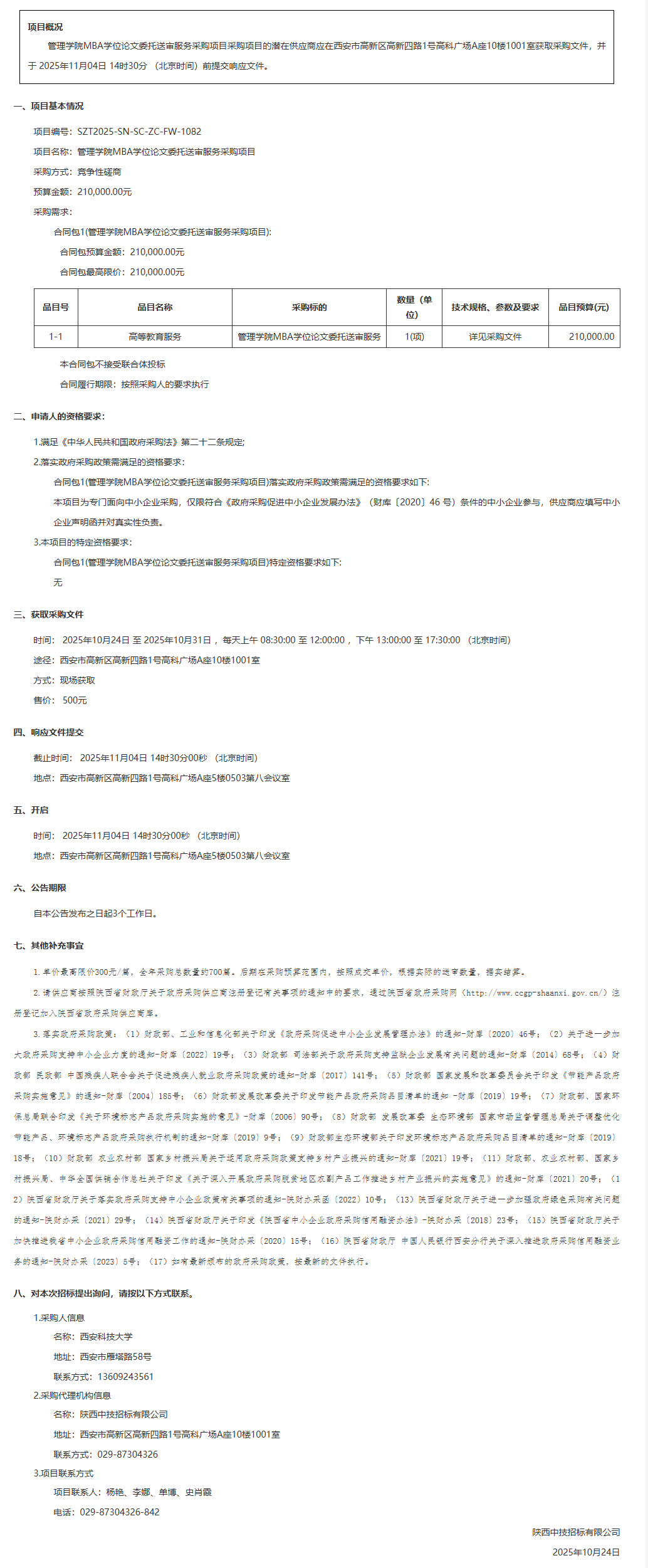 西安科技大学管理学院MBA学位论文委托送审服务采购项目竞争性磋商公告