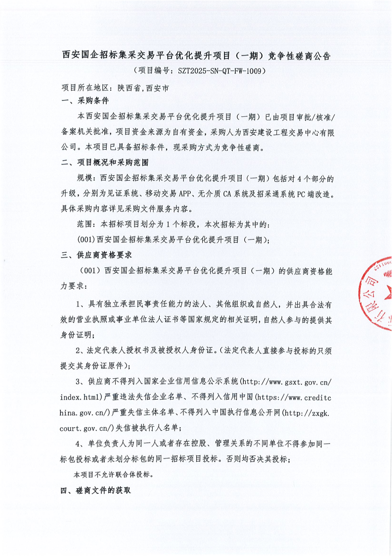 西安国企招标集采交易平台优化提升项目(一期)竞争性磋商公告