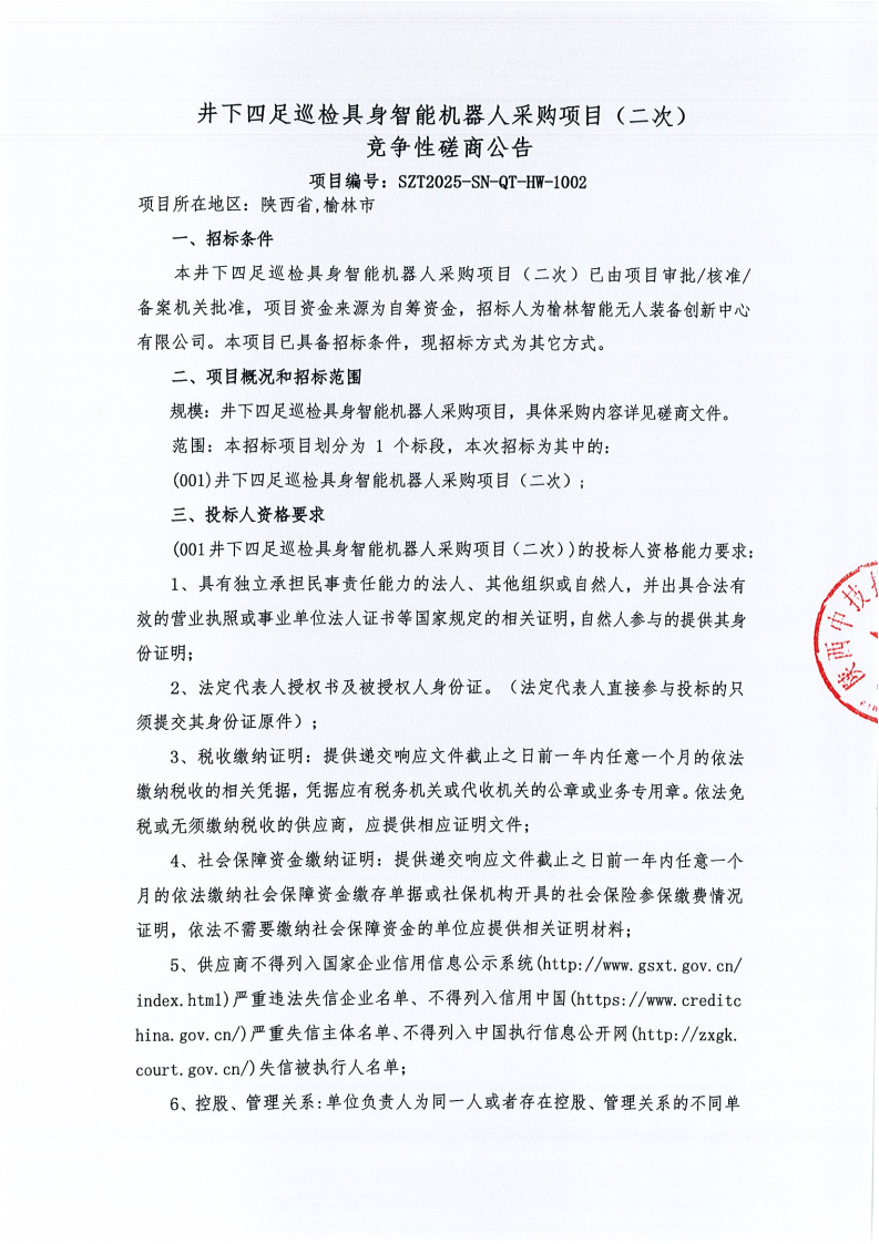 井下四足巡检具身智能机器人采购项目(二次)竞争性磋商公告