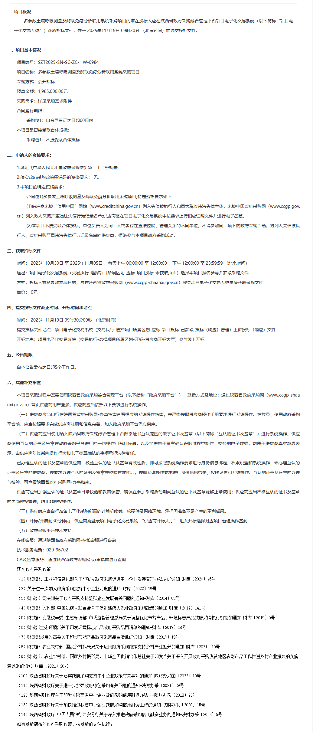 延安大学多参数土壤呼吸测量及酶联免疫分析联用系统采购项目招标公告